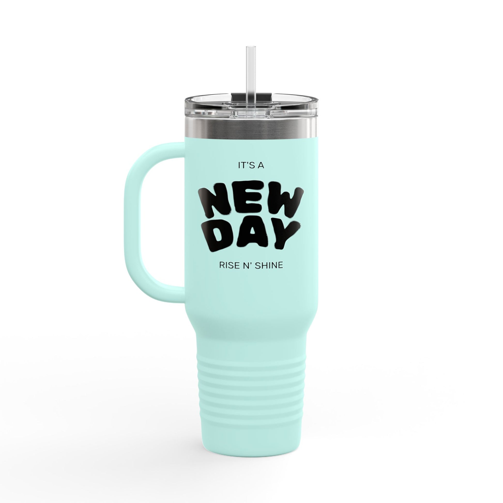 40oz Insulated Travel Mug — "It's a New Day" Motivational Tumbler
