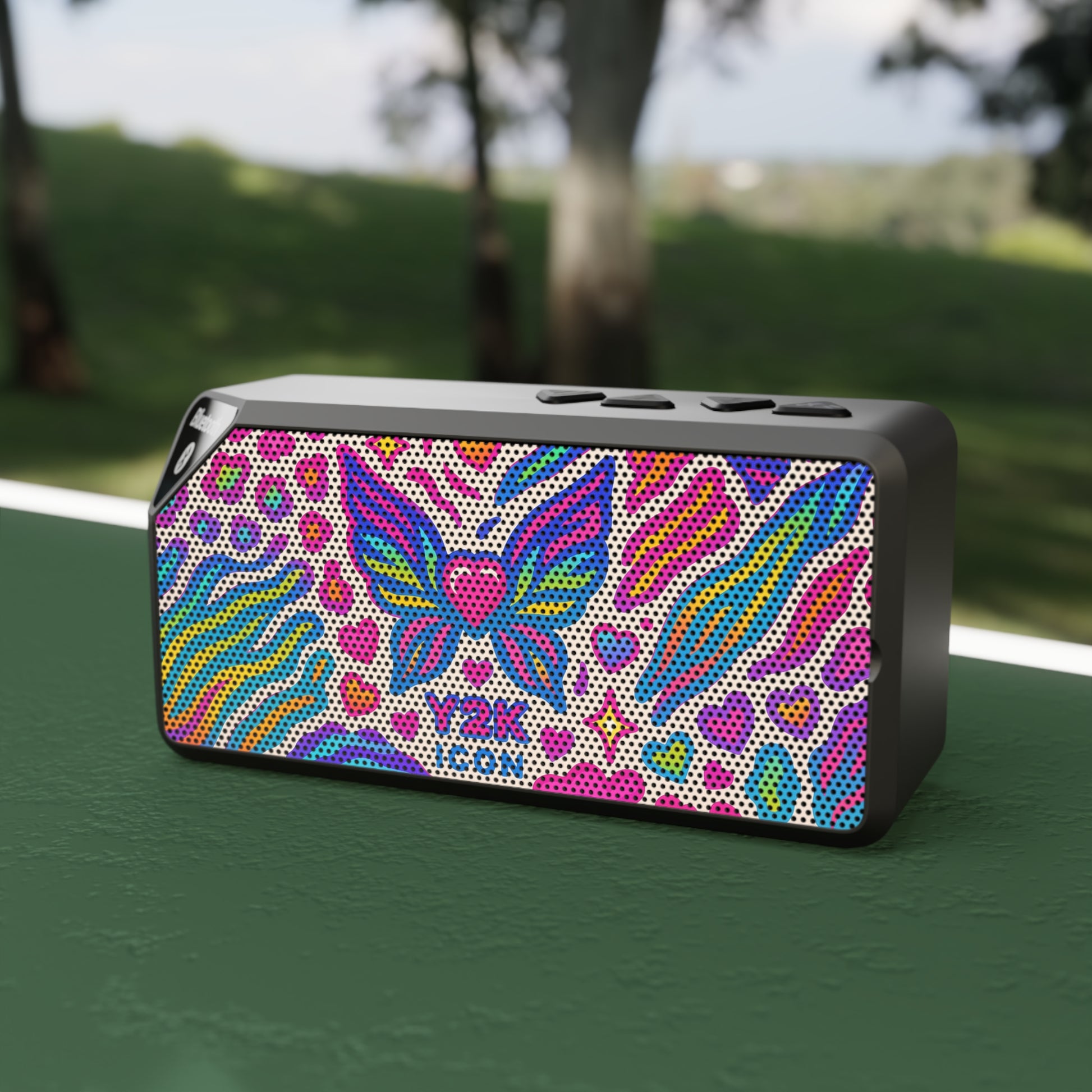 90s Rainbow sticker animal-print pattern (leopard + zebra + tiger), neon colors - Butterfly Heart Bluetooth Speaker — Colorful Rainbow Portable Speaker
