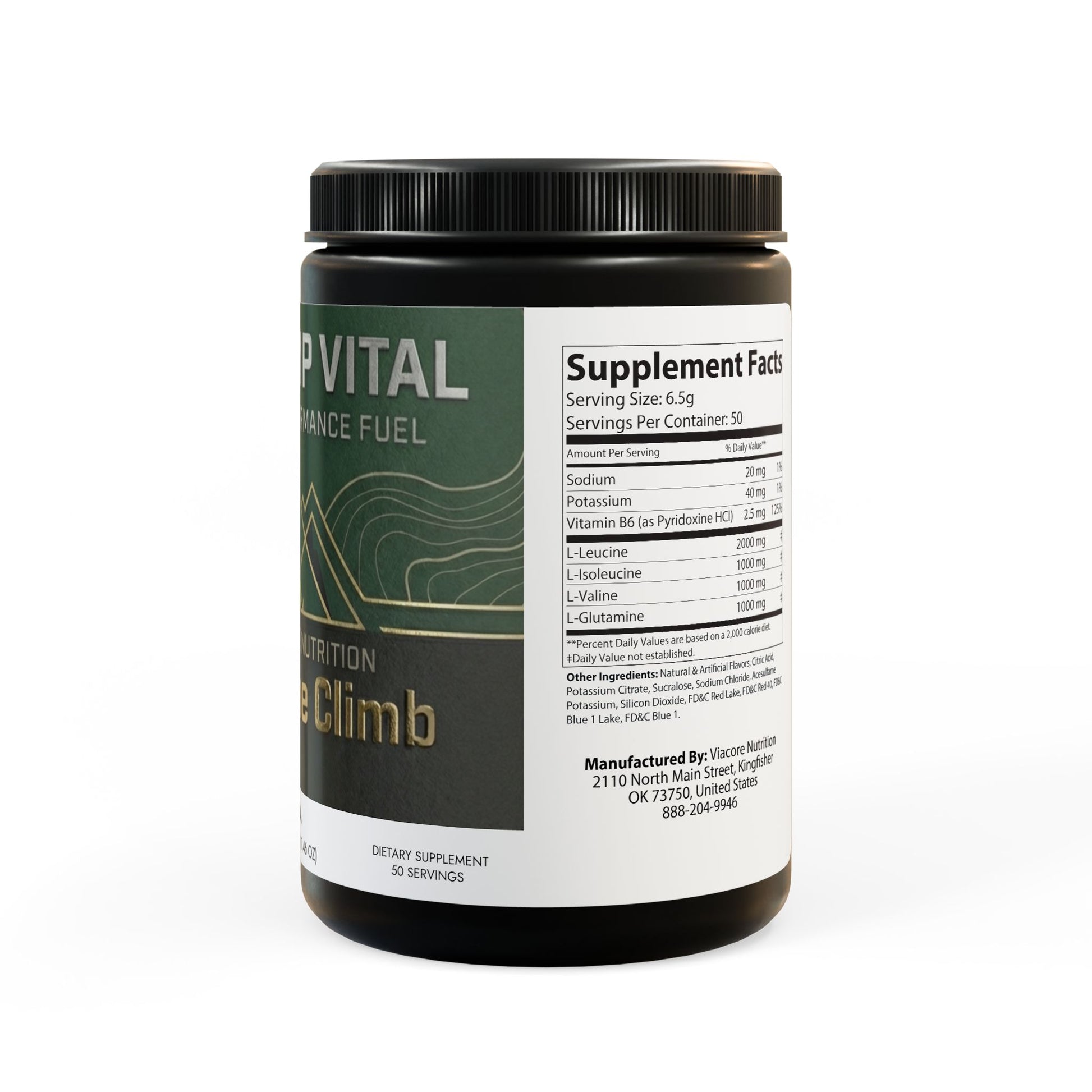The Base Camp Vital BCAA Supplement comes in a fresh Grape flavor and is formulated with optimal ratios of branched-chain amino acids to improve exercise performance and support recovery.