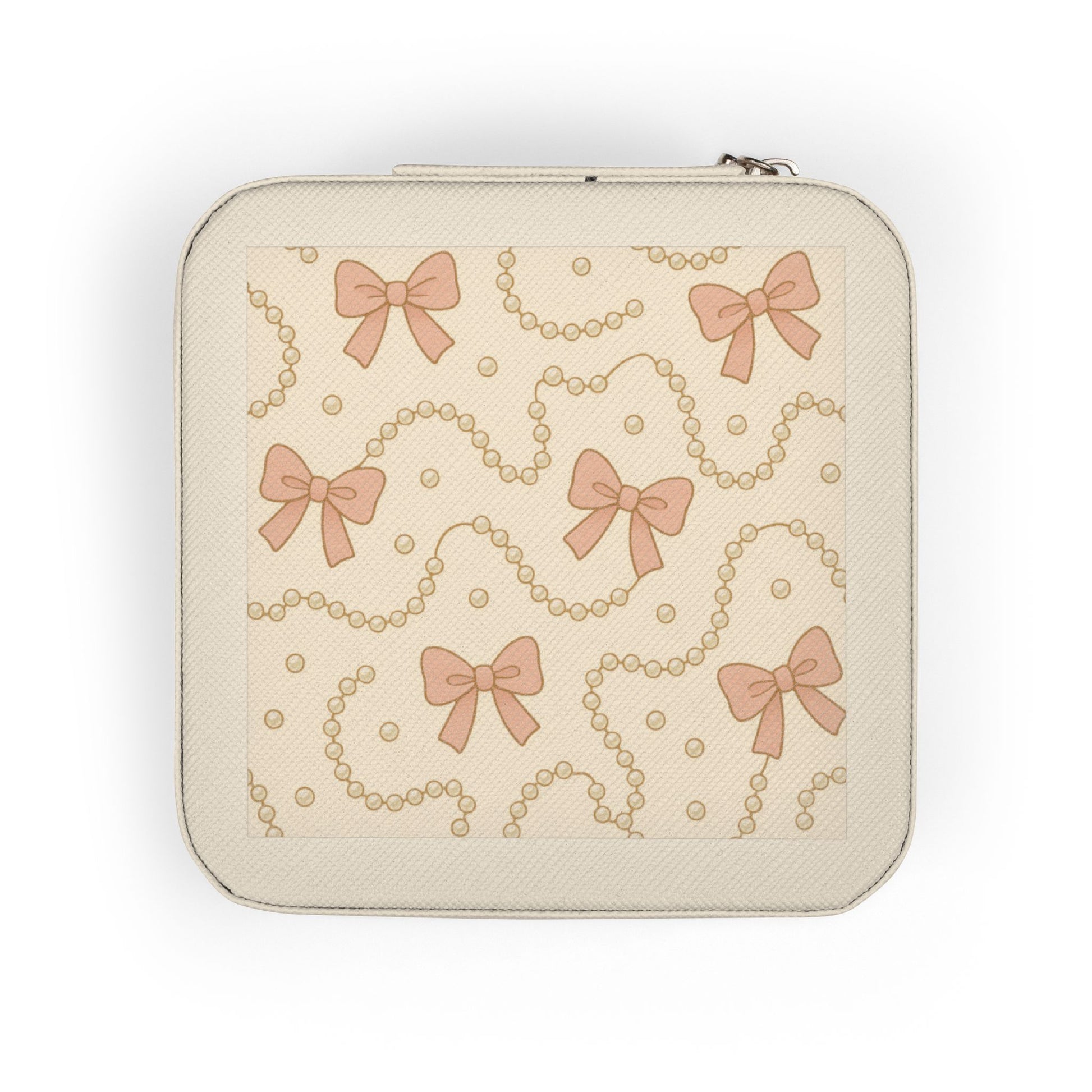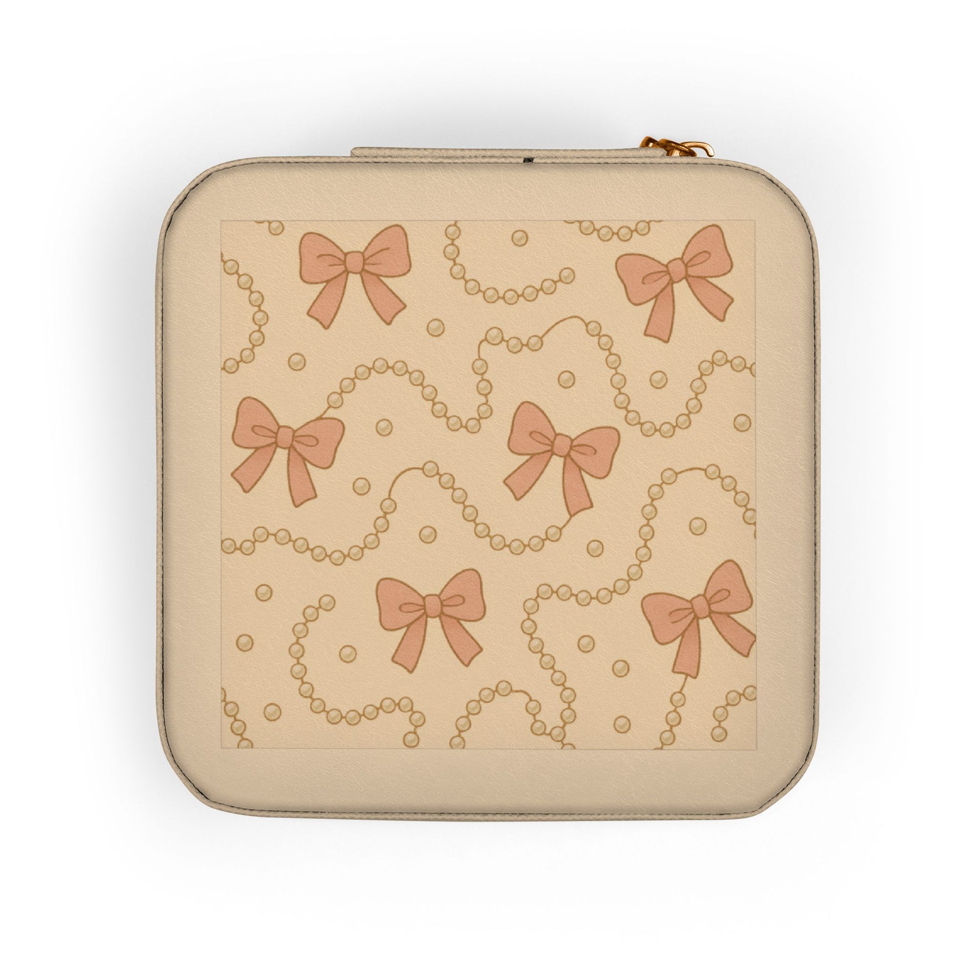 A compact, softly structured jewelry travel case that keeps treasured pieces safe and beautifully organized on the go. The petite square silhouette fits neatly into a purse or carry-on while offering ring rolls, divided compartments, and necklace hooks to separate chains, studs, and bracelets without tangles. Plush, protective lining cushions delicate metals and stones; the PU leather exterior wipes clean and the secure zip-around closure locks everything in place. The subtle printed panel and thoughtful interior layout make this case feel like a tiny personal jewelry box — comforting, tidy, and ready for wherever your day (or trip) takes you.