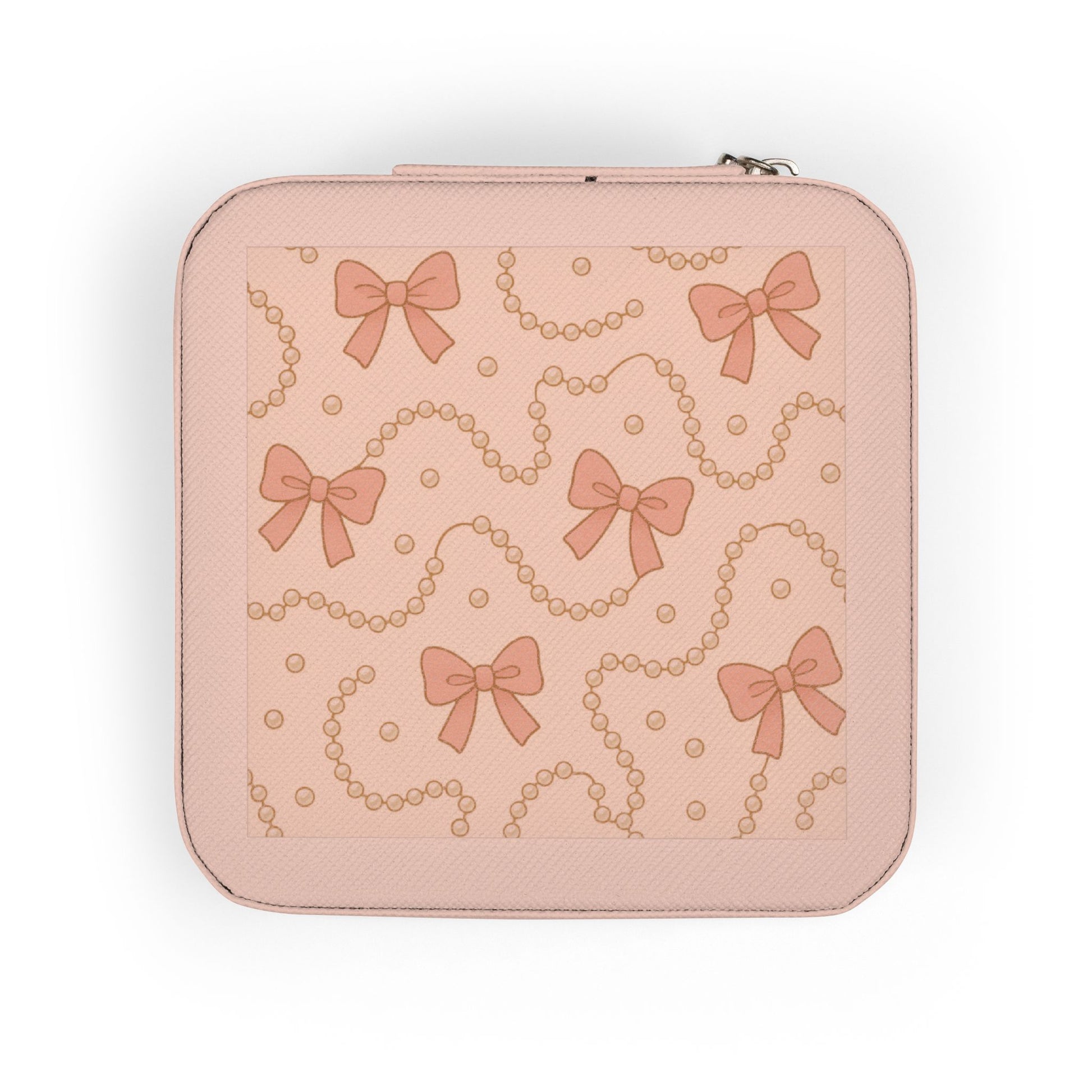 Bow Pattern Jewelry Travel Case – Compact Pink Ring & Earring Organizer