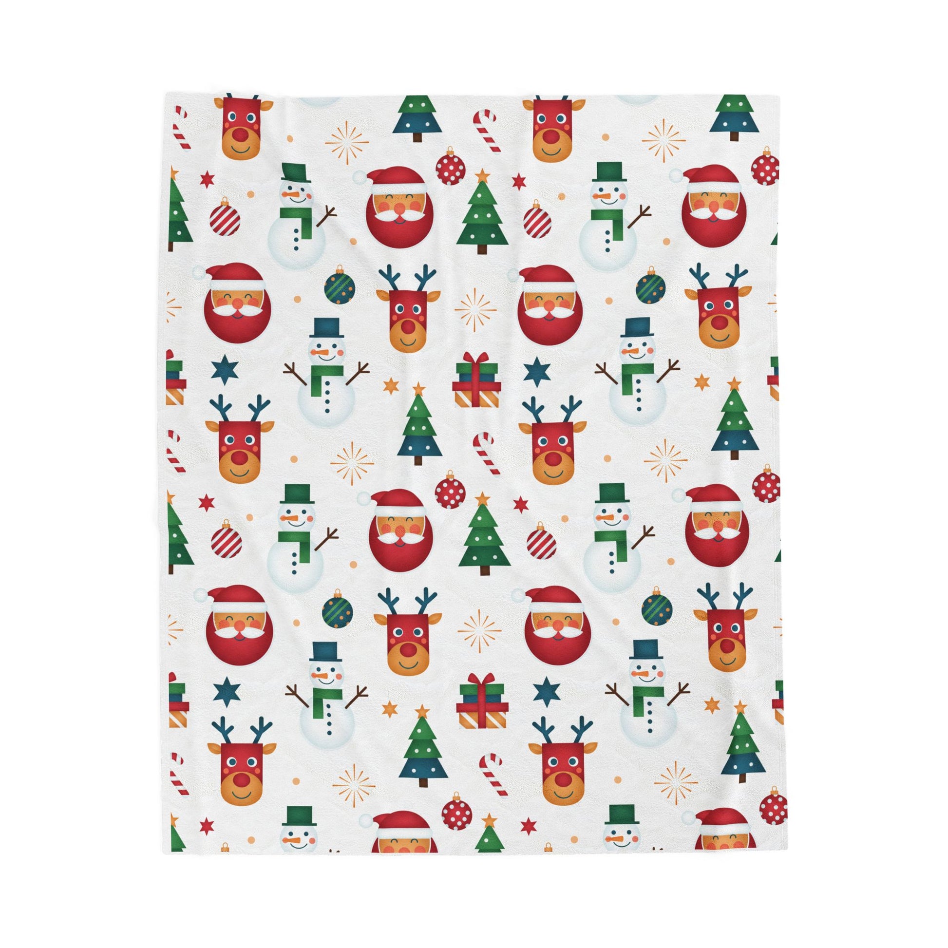 Soft, plush, and playful — this velveteen blanket wraps you in a cozy holiday mood. Lightweight but warm, its velvety face showcases crisp, colorful seasonal icons: smiling snowmen, cheerful reindeer, decorated trees and playful ornaments laid out on a clean white field. It tucks easily over shoulders during movie nights, layers on top of a sofa for winter mornings, or becomes a cheerful accent draped across a guest bed. The fabric’s smooth hand and vibrant one-sided print keep the artwork bright wash after wash, while reinforced double-needle seams hold up through repeated use. This blanket lives in moments: quiet cocoa-sipping evenings, living-room tree decorating, and cuddled-up story time with grown-up tastes in holiday whimsy.