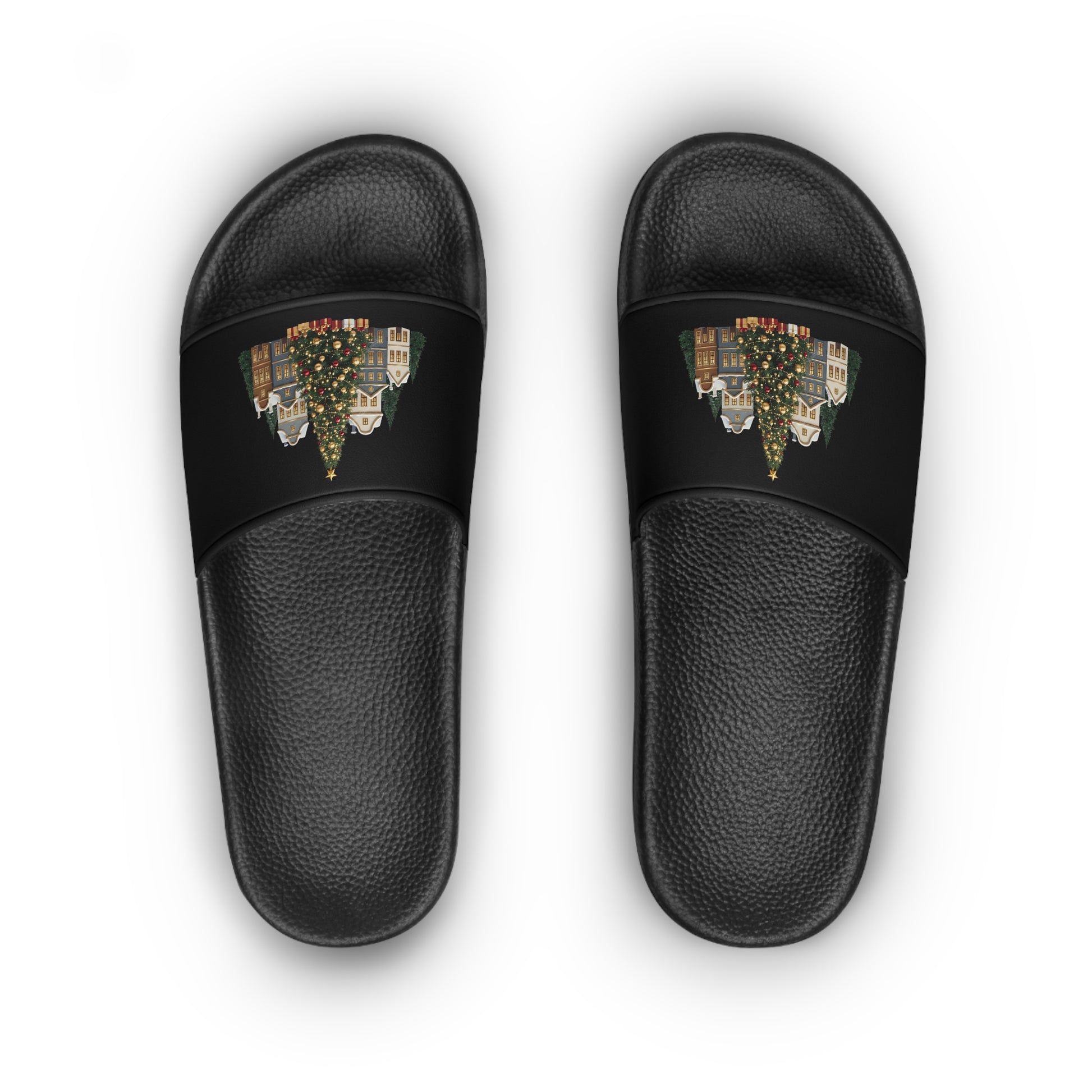 Christmas town, holiday seemed , Christmas treeWomen's Slide Sandals