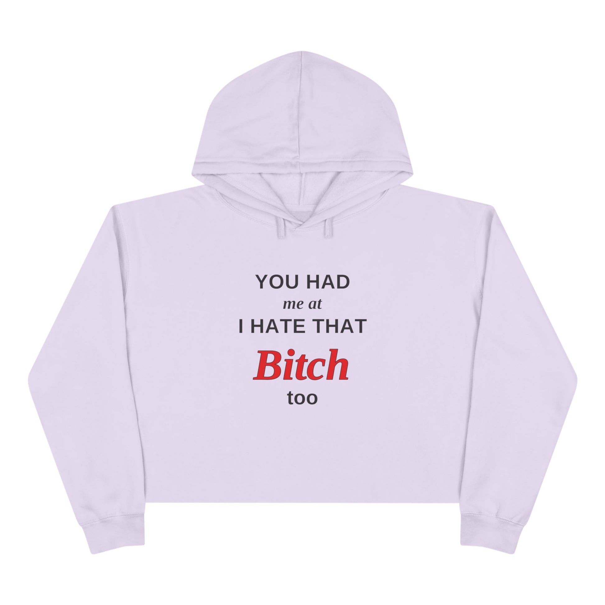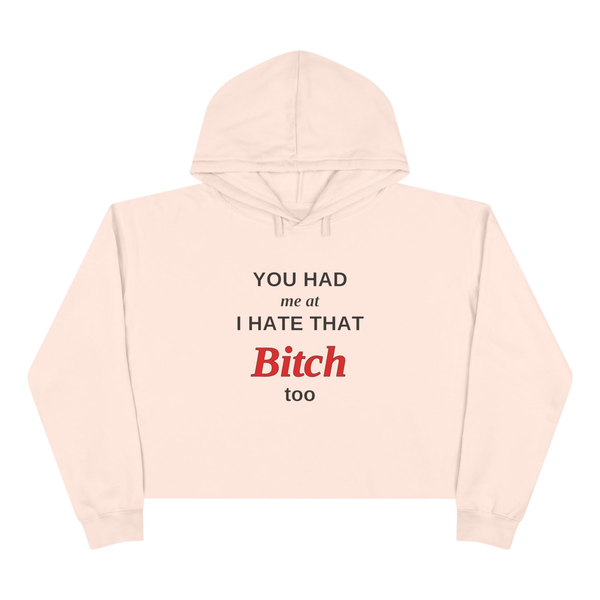 Cropped Hoodie — “You Had Me at I Hate That Bitch Too” Graphic