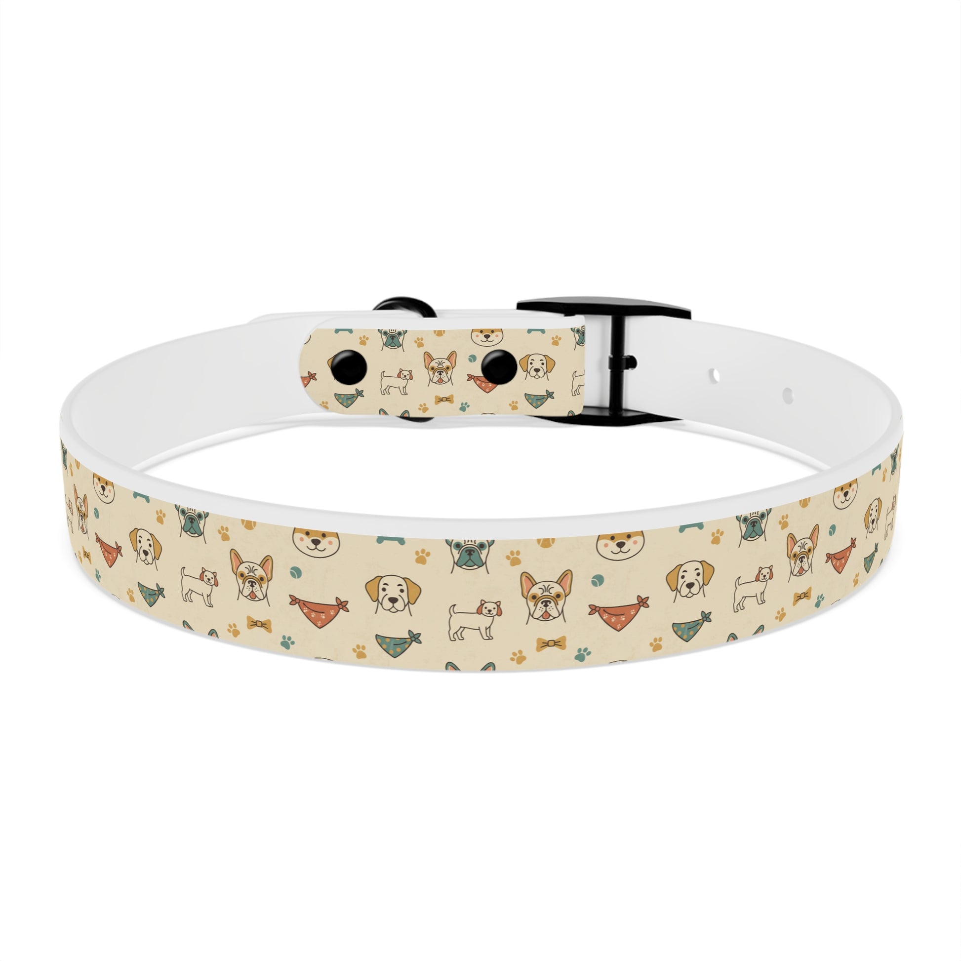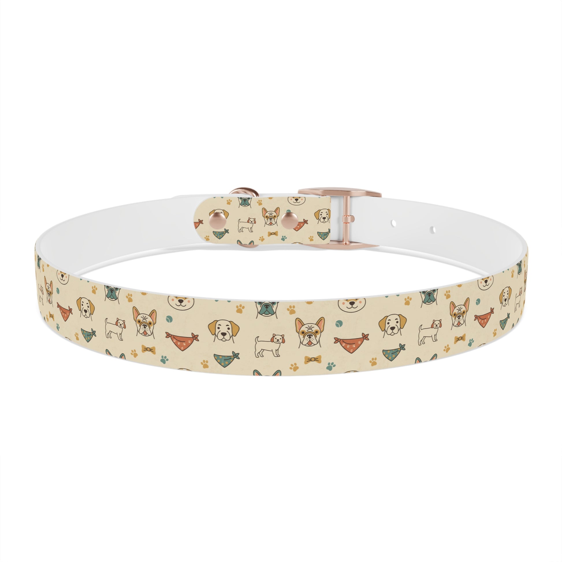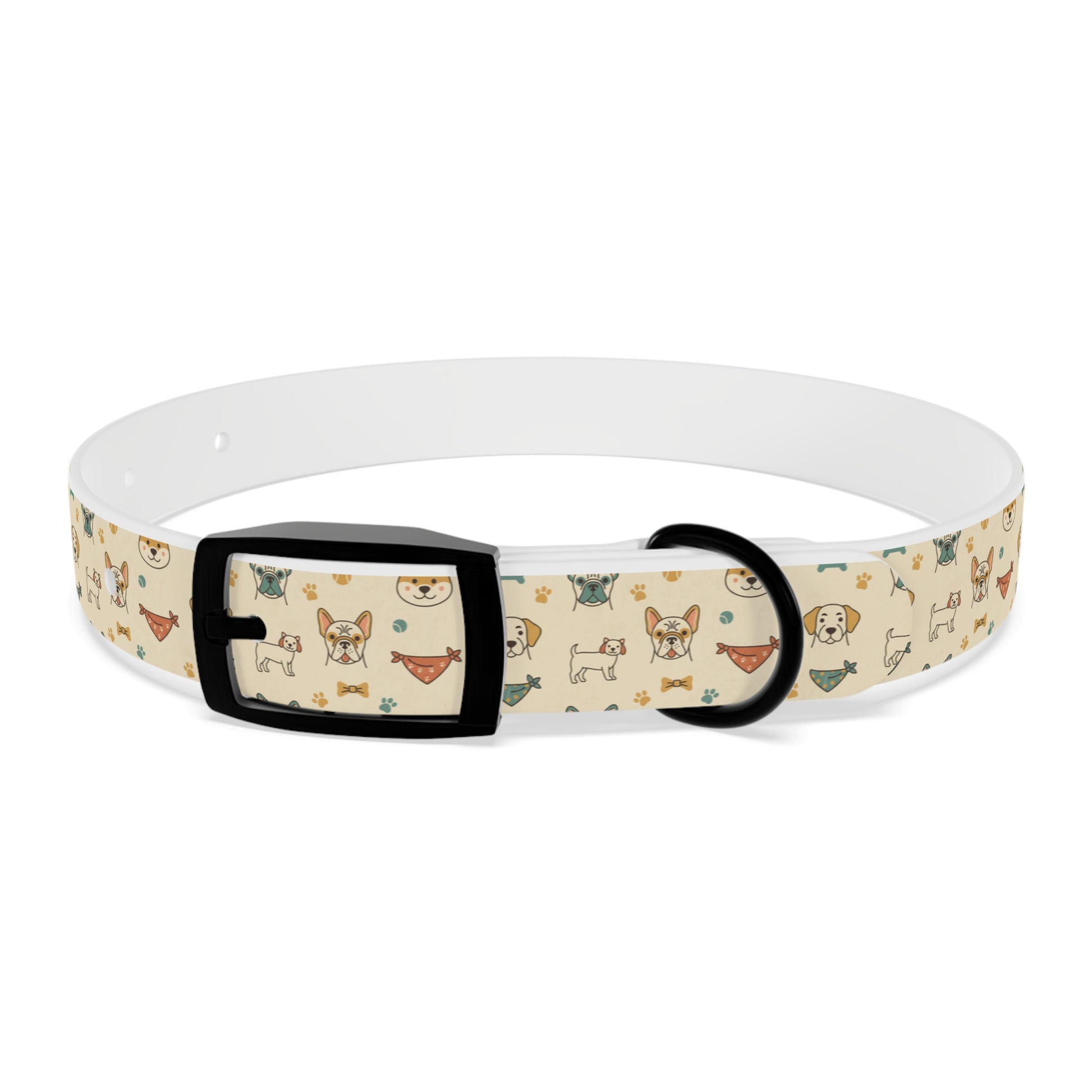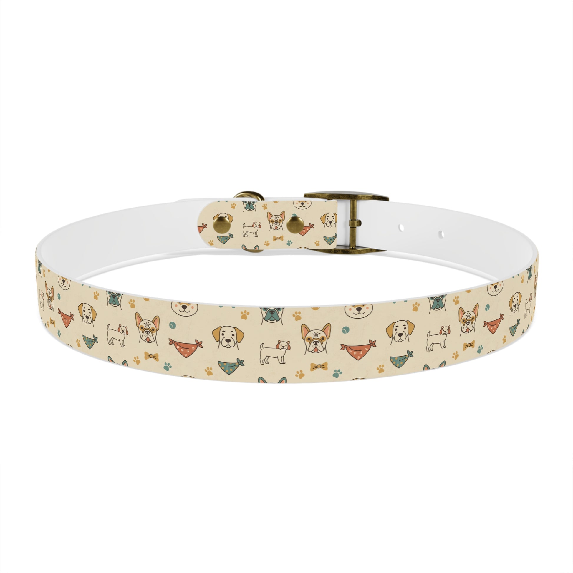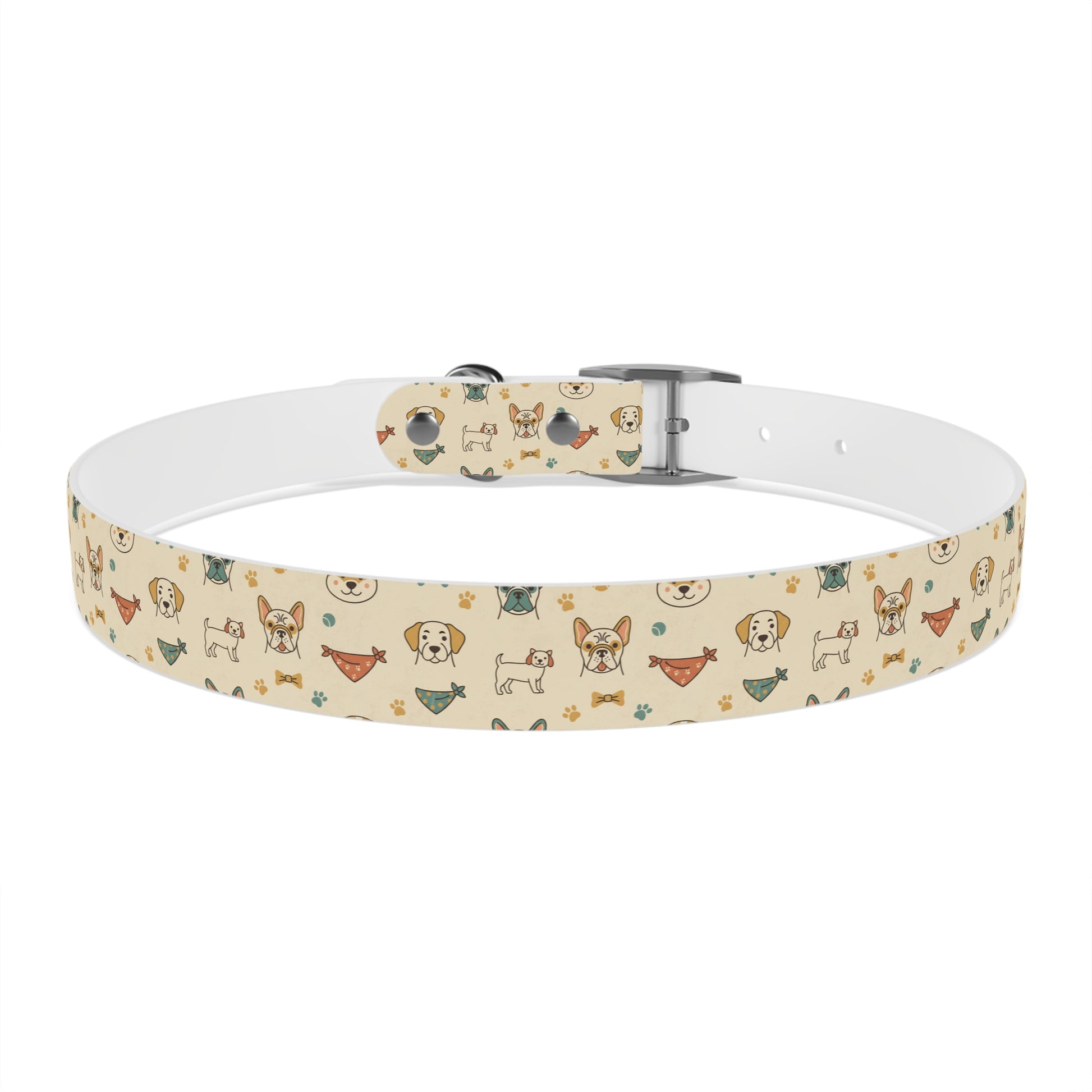 Cute Cartoon Dogs Dog Collar — Beige Puppy Pattern Adjustable Collar