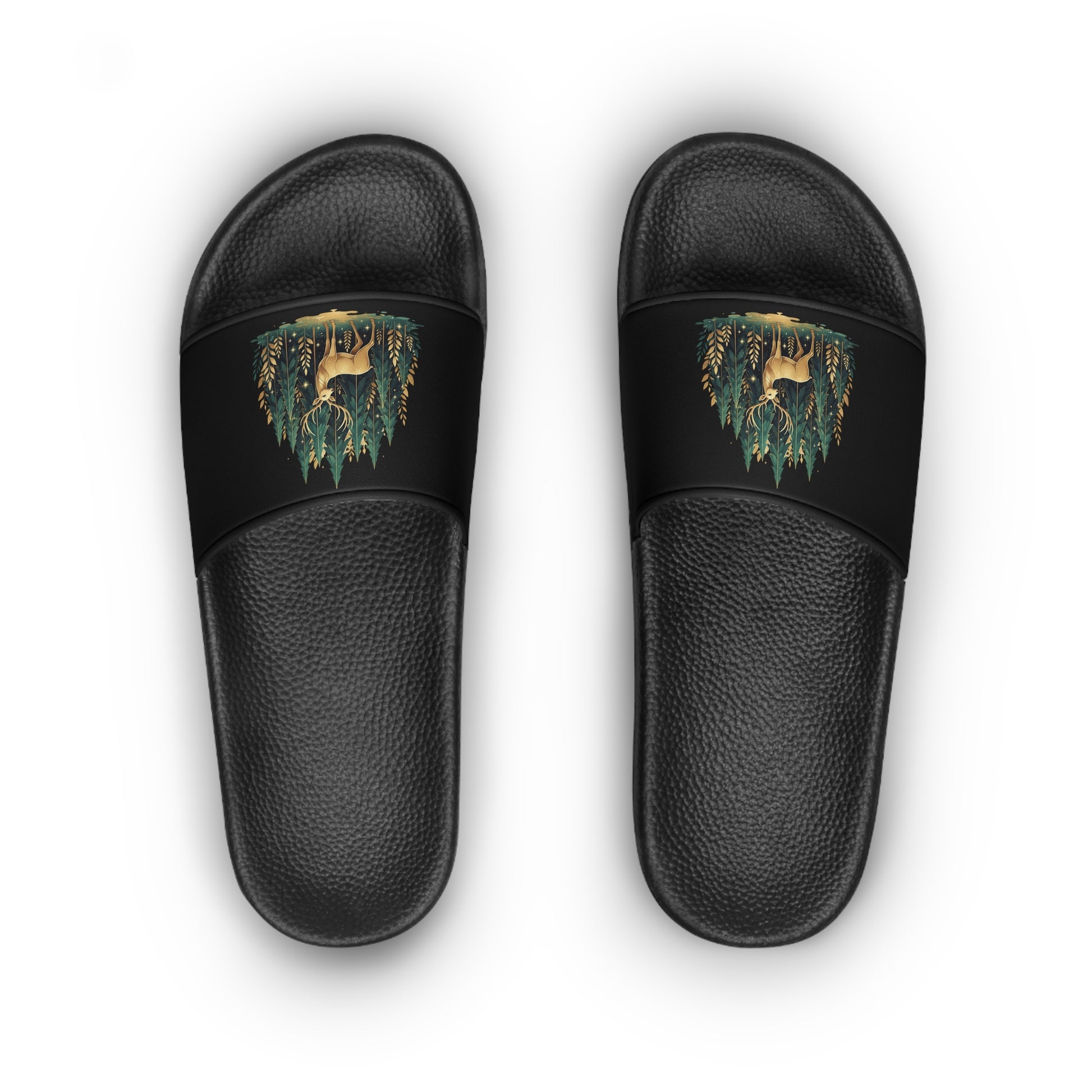 Elegant Christmas snow, holiday reindeer, Women's Slide Sandals