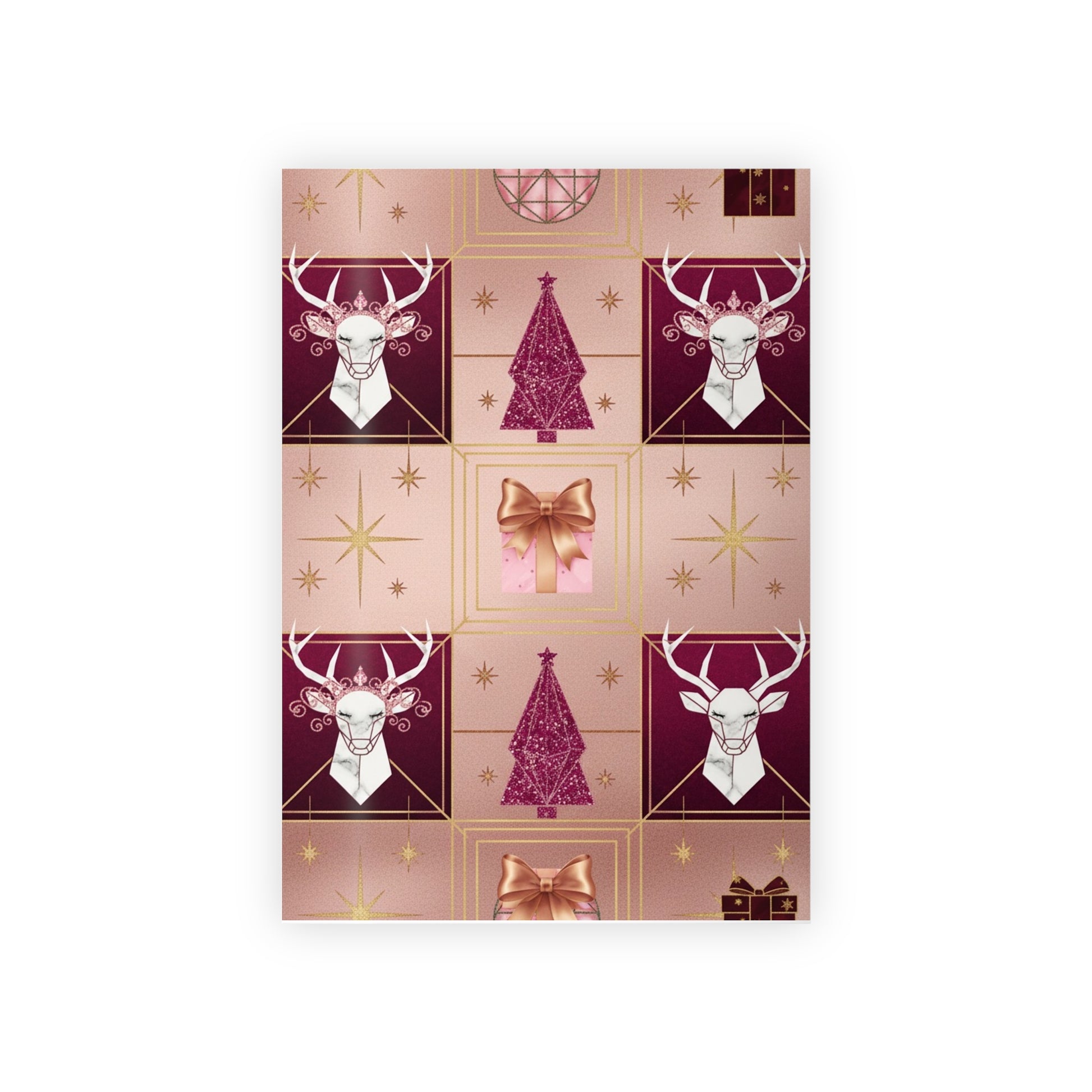 Elegant Holiday Gift Wrapping Paper Roll - Christmas Design with Reindeer and Golden Accents