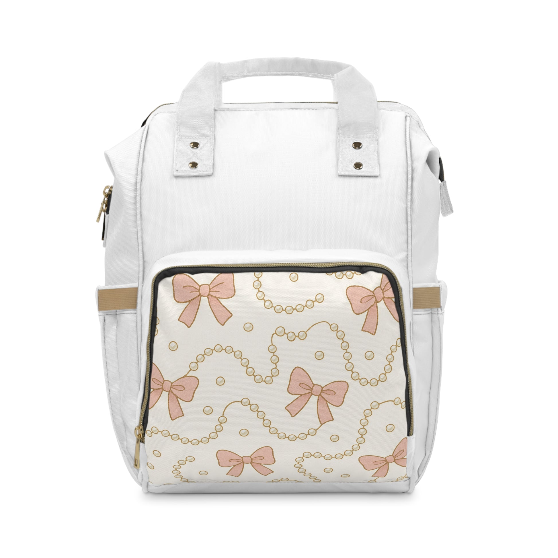 Elegant Pink Bow & Pearl Pattern Diaper Backpack