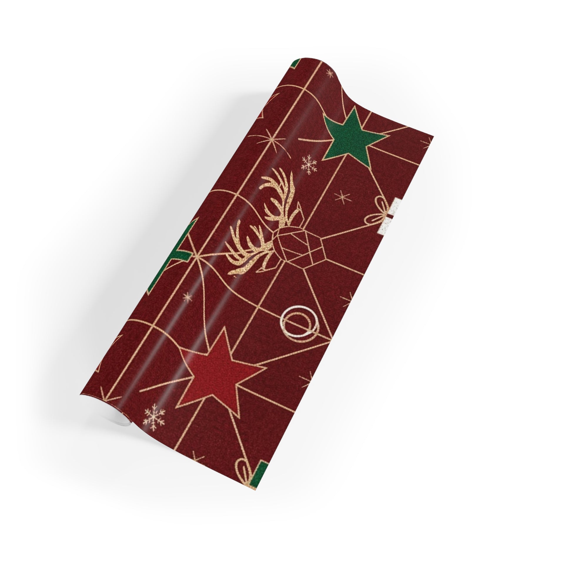 Festive Holiday Gift Wrap Roll - Christmas Trees & Stars Design