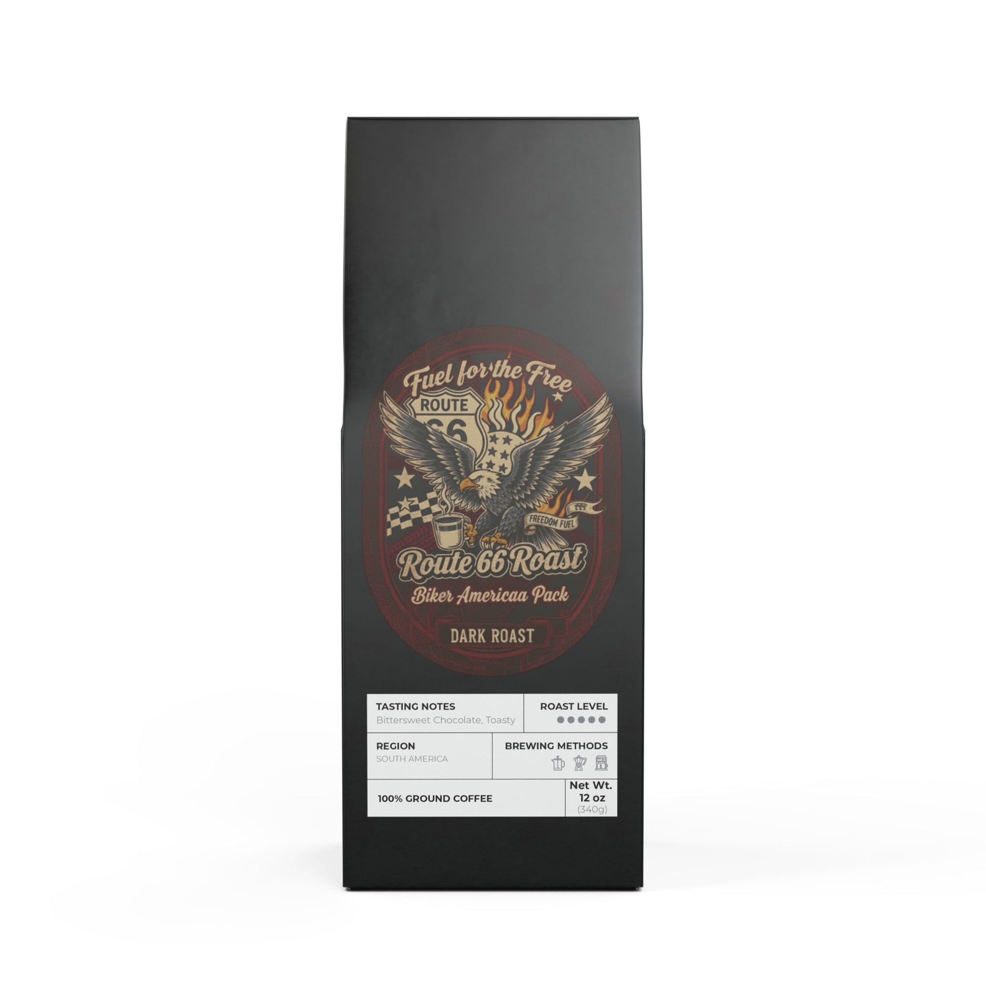 Is an American made company we created this blend to beStrong enough to keep you riding all night, smooth enough to fuel the sunrise. Route 66 Roast – Biker Americana Pack is a salute to freedom, the open road, and the brothers who never sleep. Limited edition—because true freedom doesn’t last forever. Born for the Brave, Brewed for the Bold