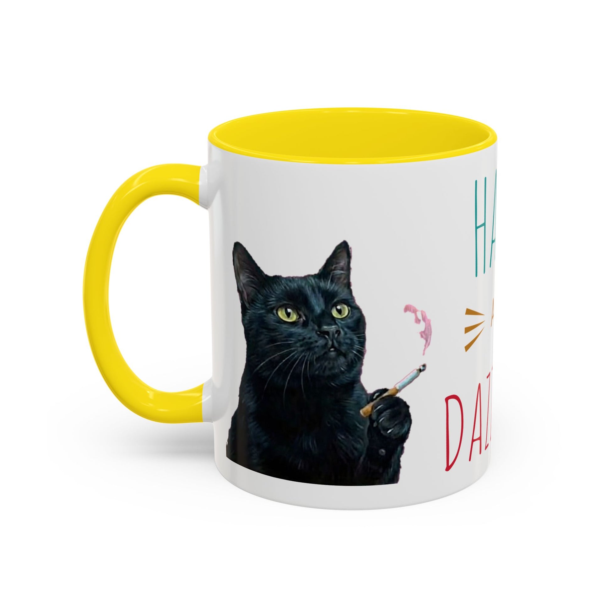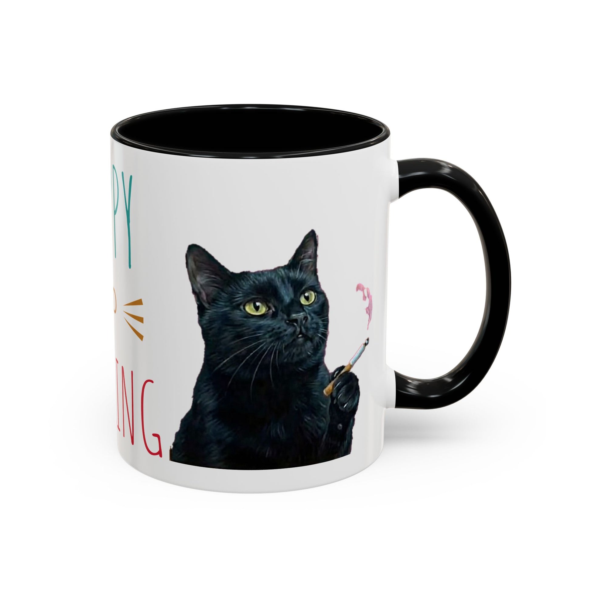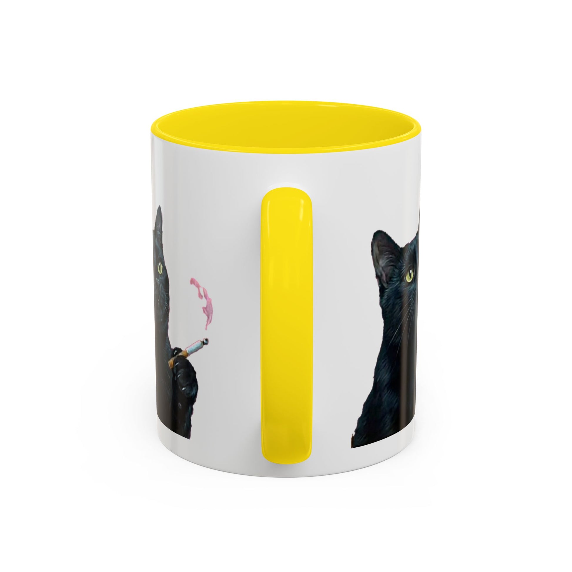 Happy and Dazzling smoking cat Cat Accent Coffee Mug — Cute Black Cat Coffee Cup (11/15oz) (free shipping)
