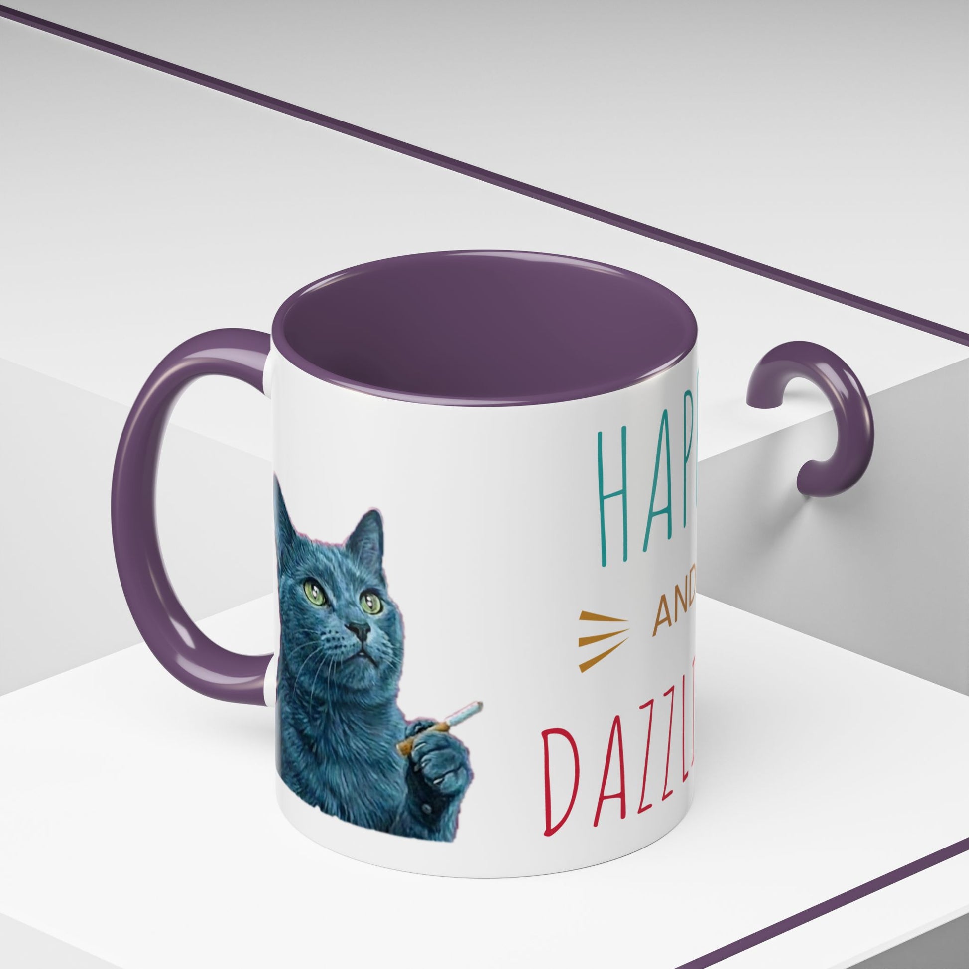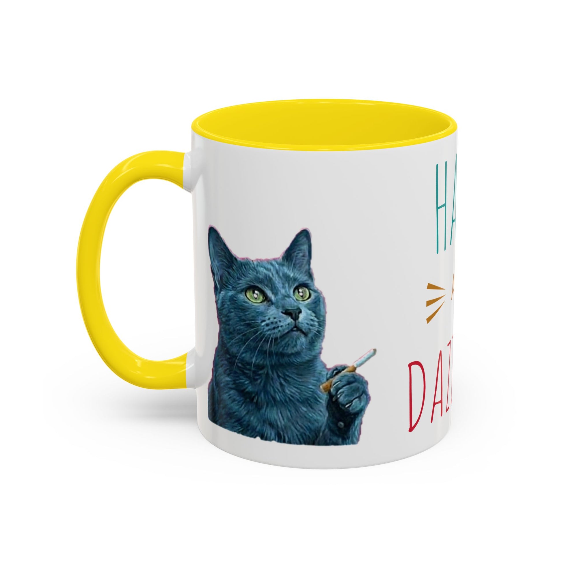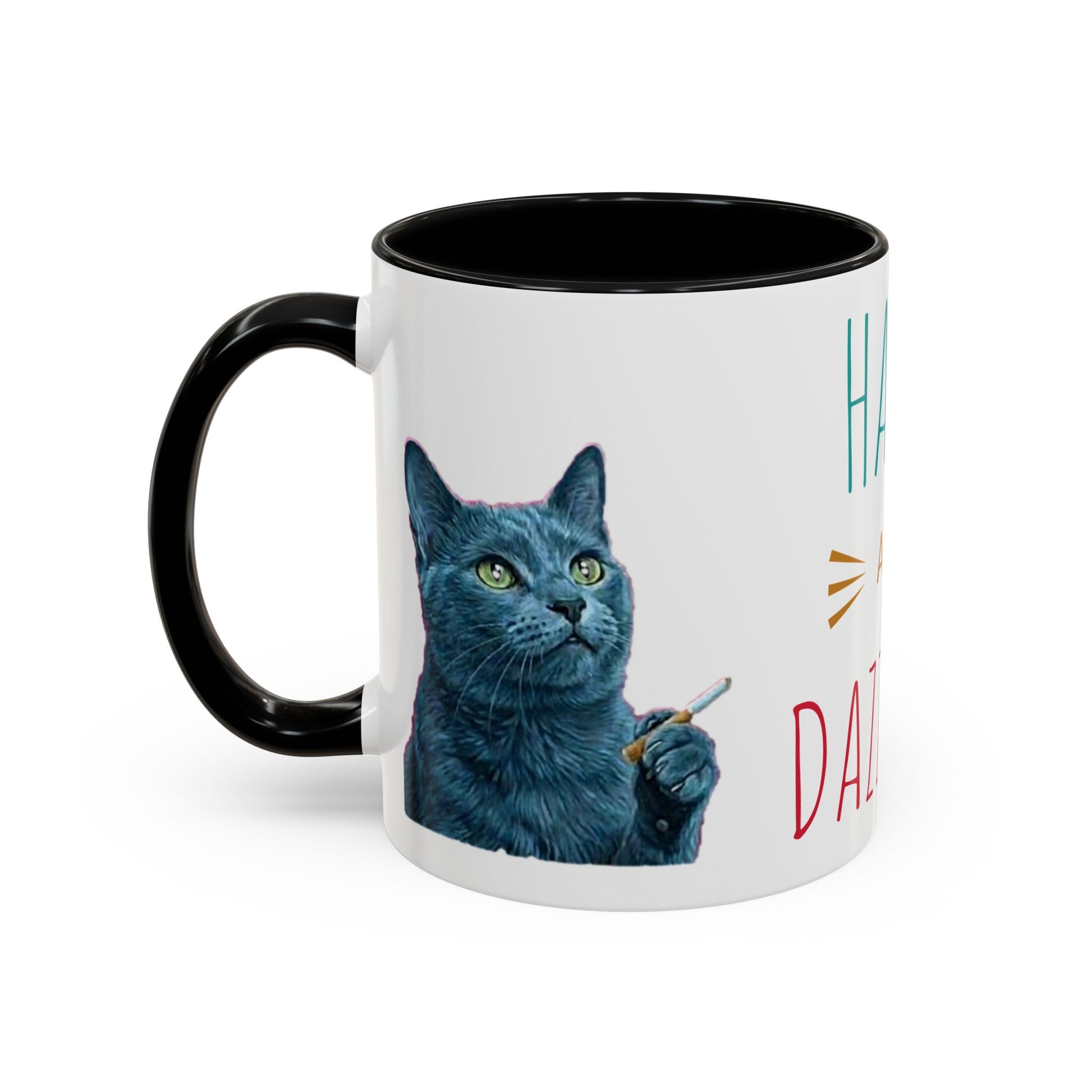 Happy and dazzling smoking cat Coffee Mug — "Happy and Dazzling" Cat Accent Mug (11/15oz) (free shipping)