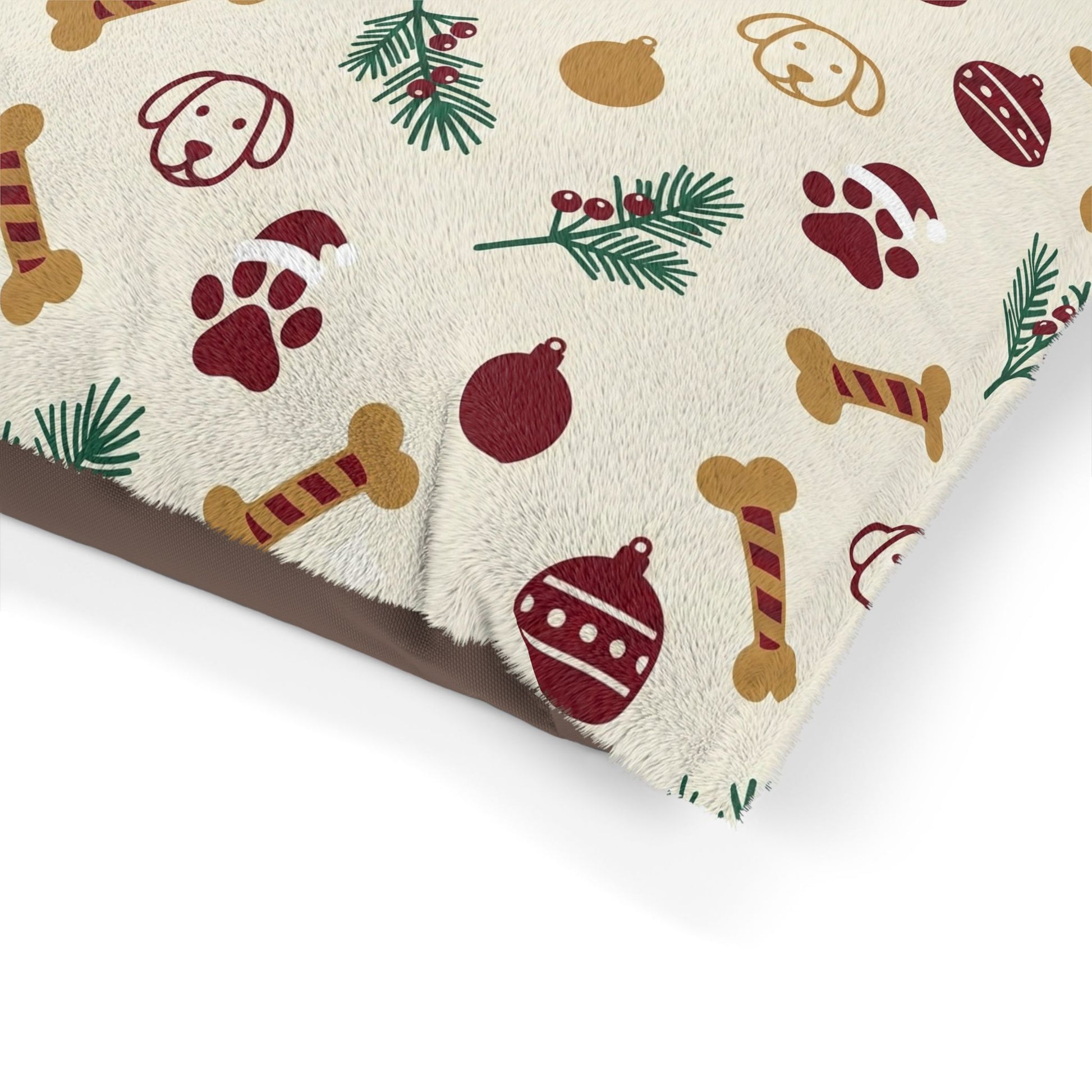 Holiday Paw Print Pet Bed — Christmas Dog Bone & Ornament Pattern