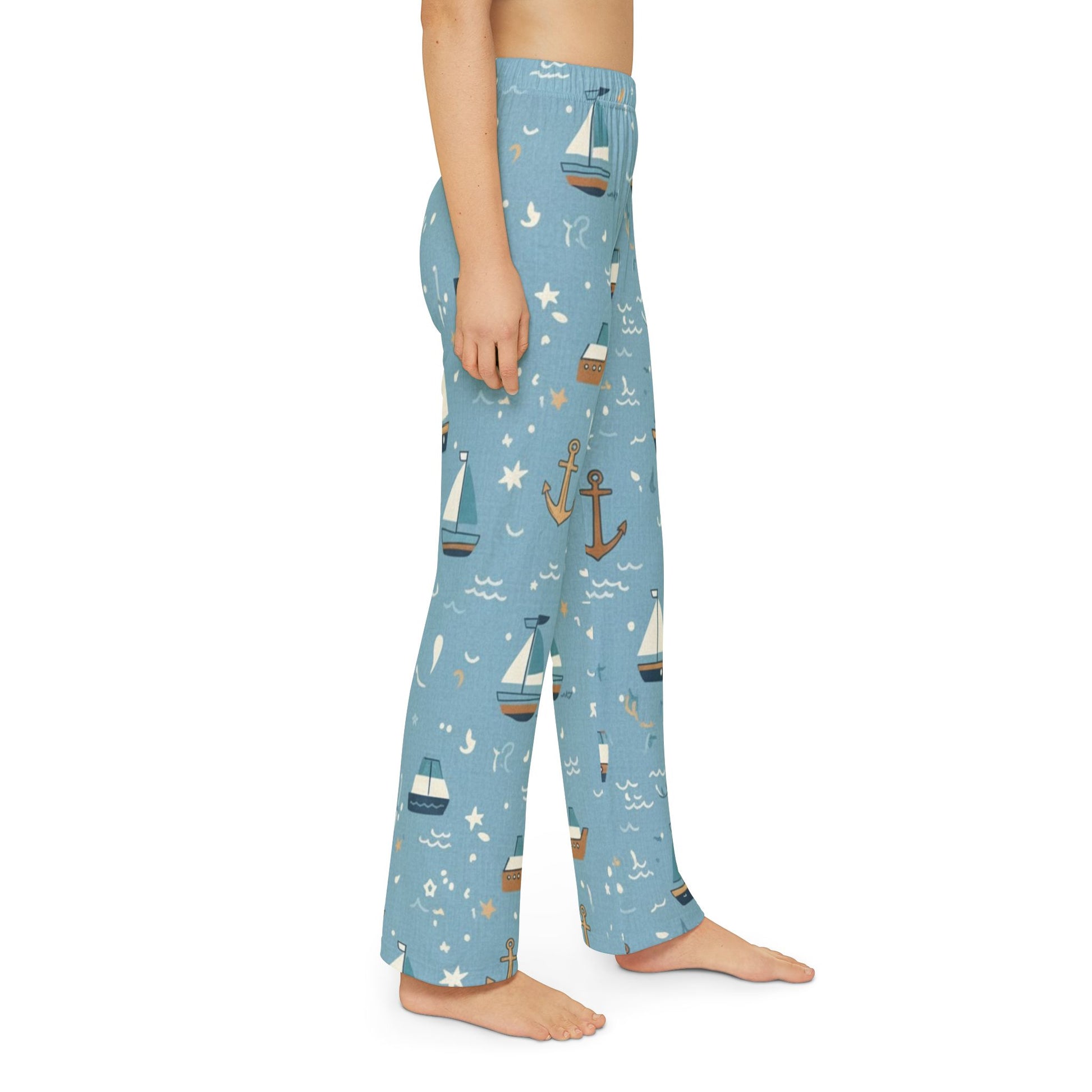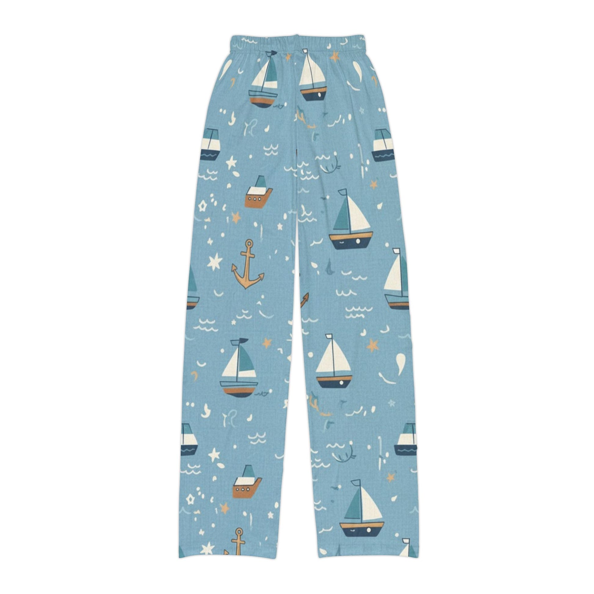 Kids Nautical Lounge Pants — Blue Sailboat Print Pajama Bottoms
