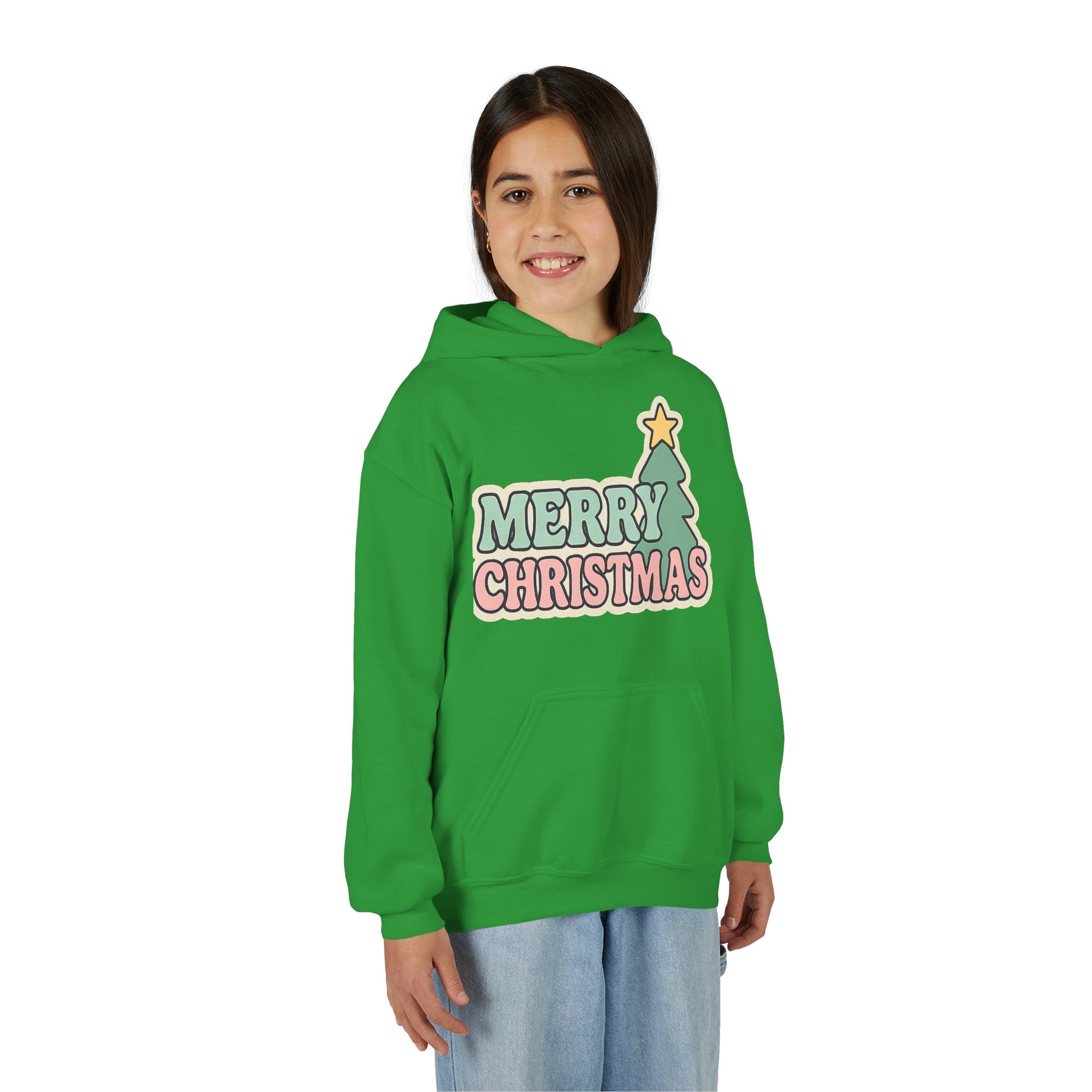 Kids youth Merry Christmas Hoodie — Pastel Tree Holiday Pullover