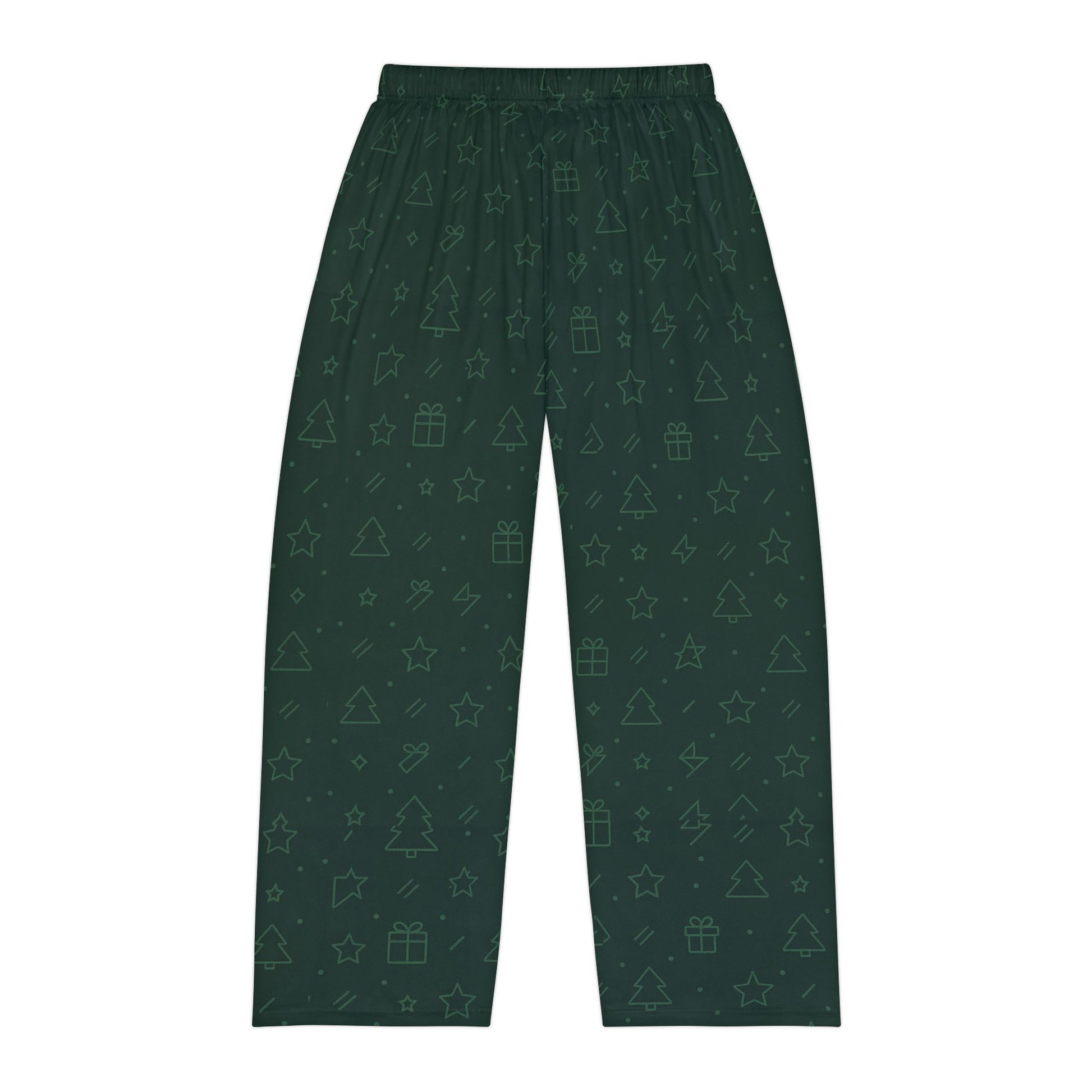 Men's Dark Green Holiday Pajama Pants — Minimal Christmas Icons All-Over Print