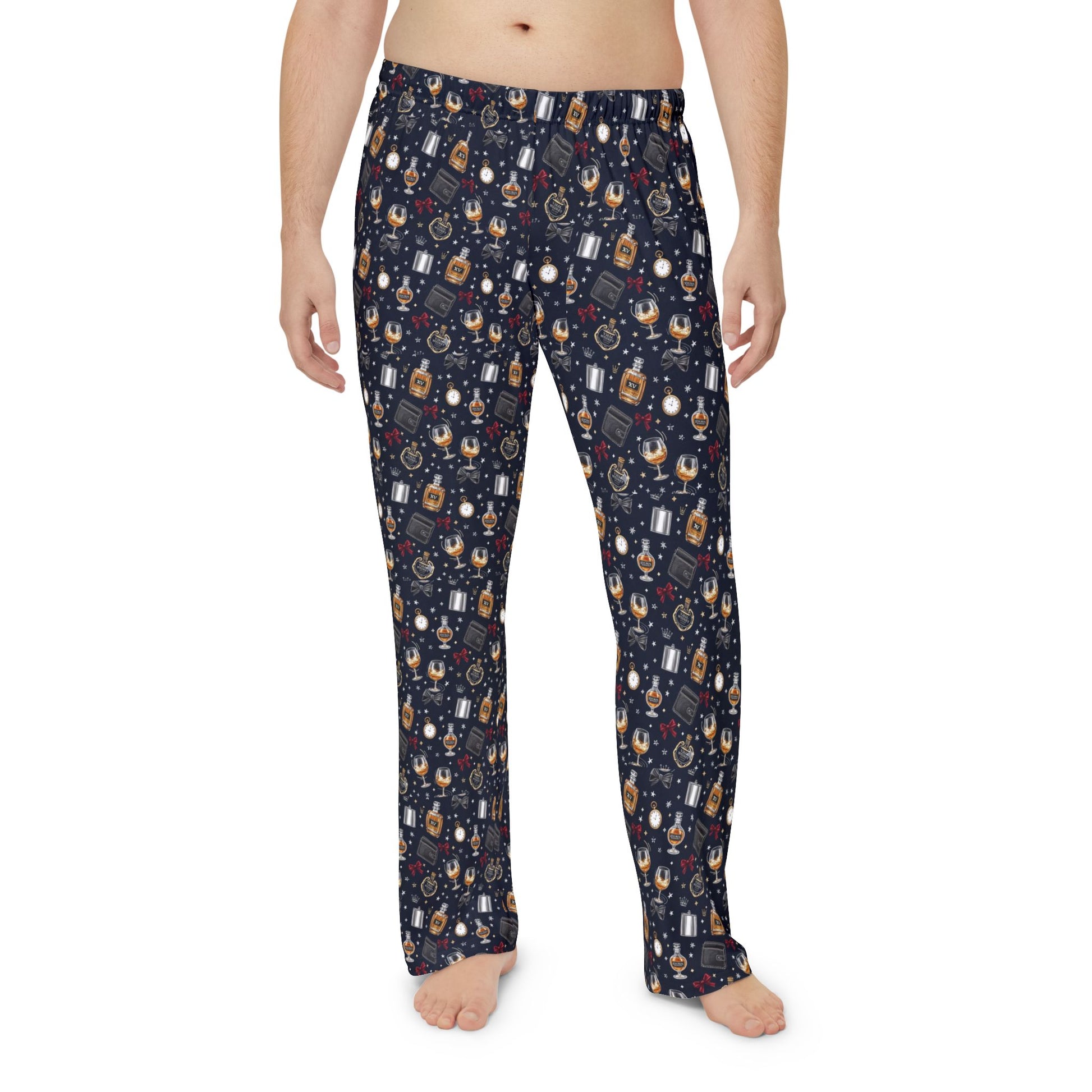Men's Holiday whiskey collectors Pajama Pants — 'Christmas whiskey collection' Graphic Lounge Pants