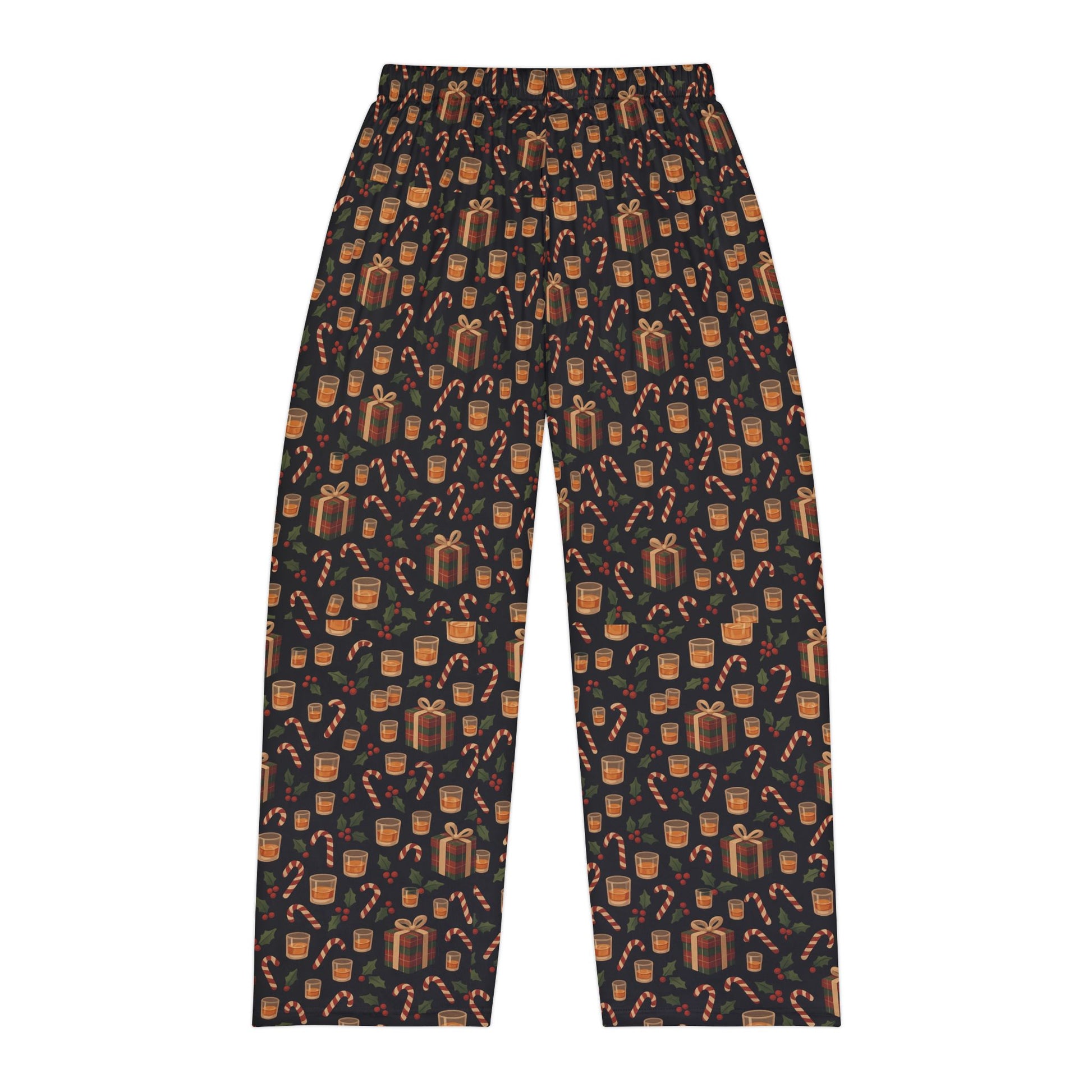 Slide into quiet, cozy whiskey nights with these printed pajama pants made for slow evenings and warm routines. The all-over pattern mixes tiny gifts, candy canes, mugs, and holly in a muted, vintage palette — comforting details that catch the eye without shouting. Lightweight brushed polyester feels soft against the skin and drapes loosely for relaxed movement. The elastic waistband and printed care label keep things simple and fuss-free. Wear them with bare feet and a steaming cup, or pair with a worn-in tee for movie nights, holiday mornings, and long, leisurely weekends at home.
