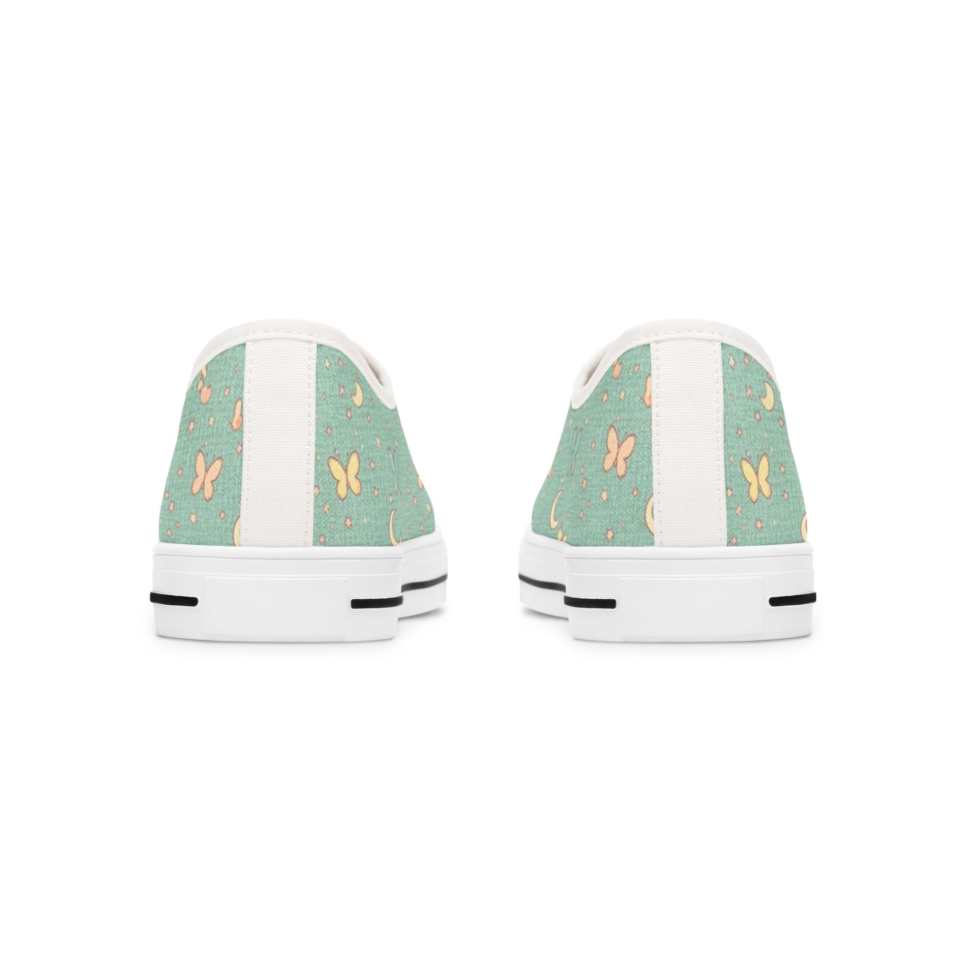 Mint Butterfly Crescent Low Top Sneakers — Women's Casual Floral Pattern Shoes