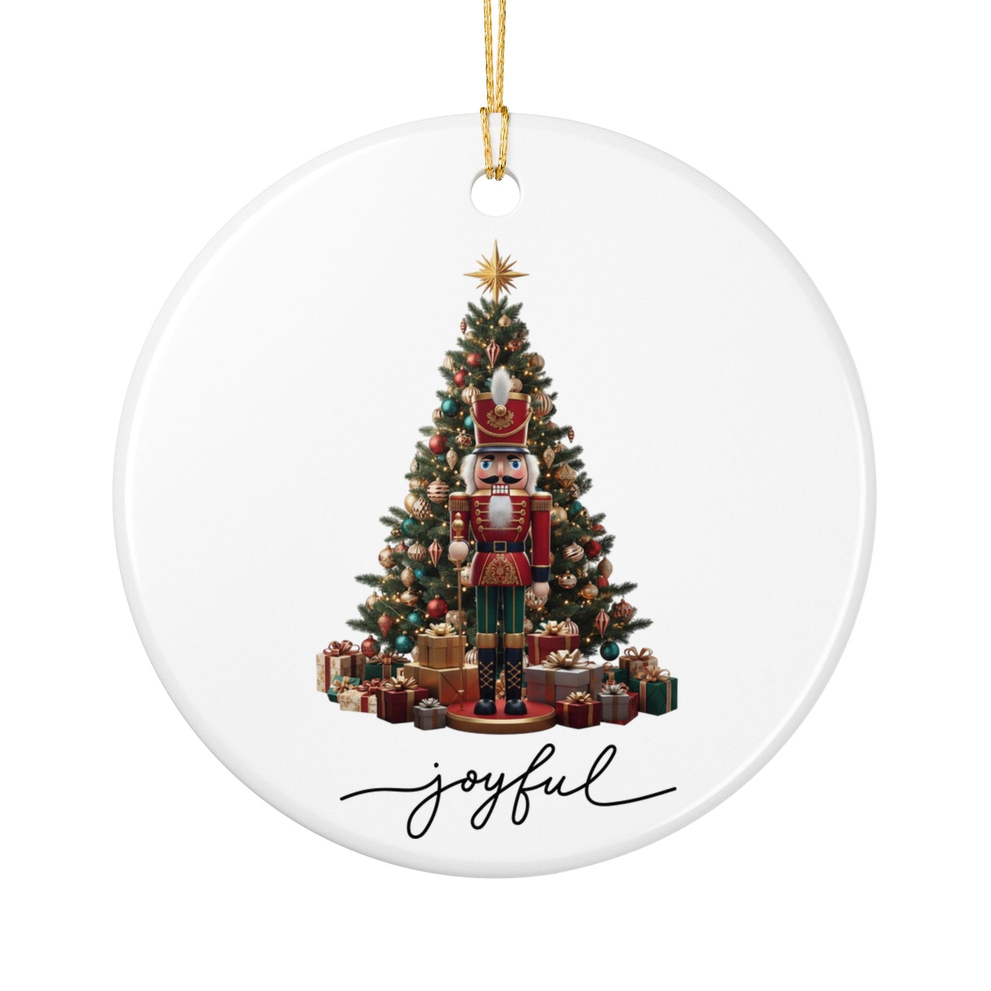 Nutcracker Christmas Tree Ceramic Ornament — 'Joyful' Holiday Decoration