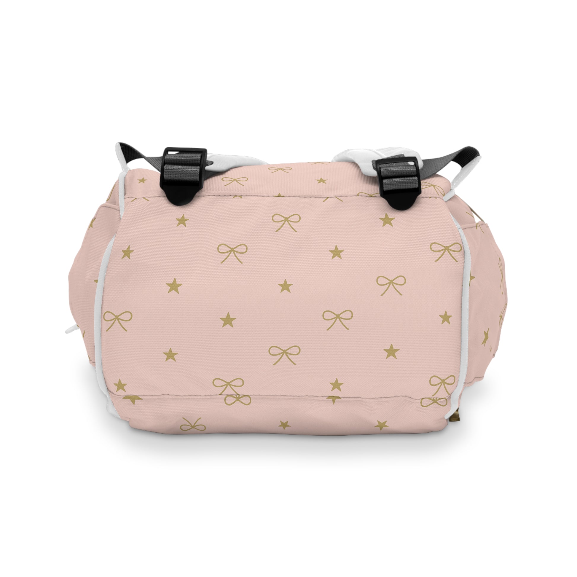 Pink Bow & Stars Diaper Backpack – Multifunctional Mommy Bag with Changing Pad