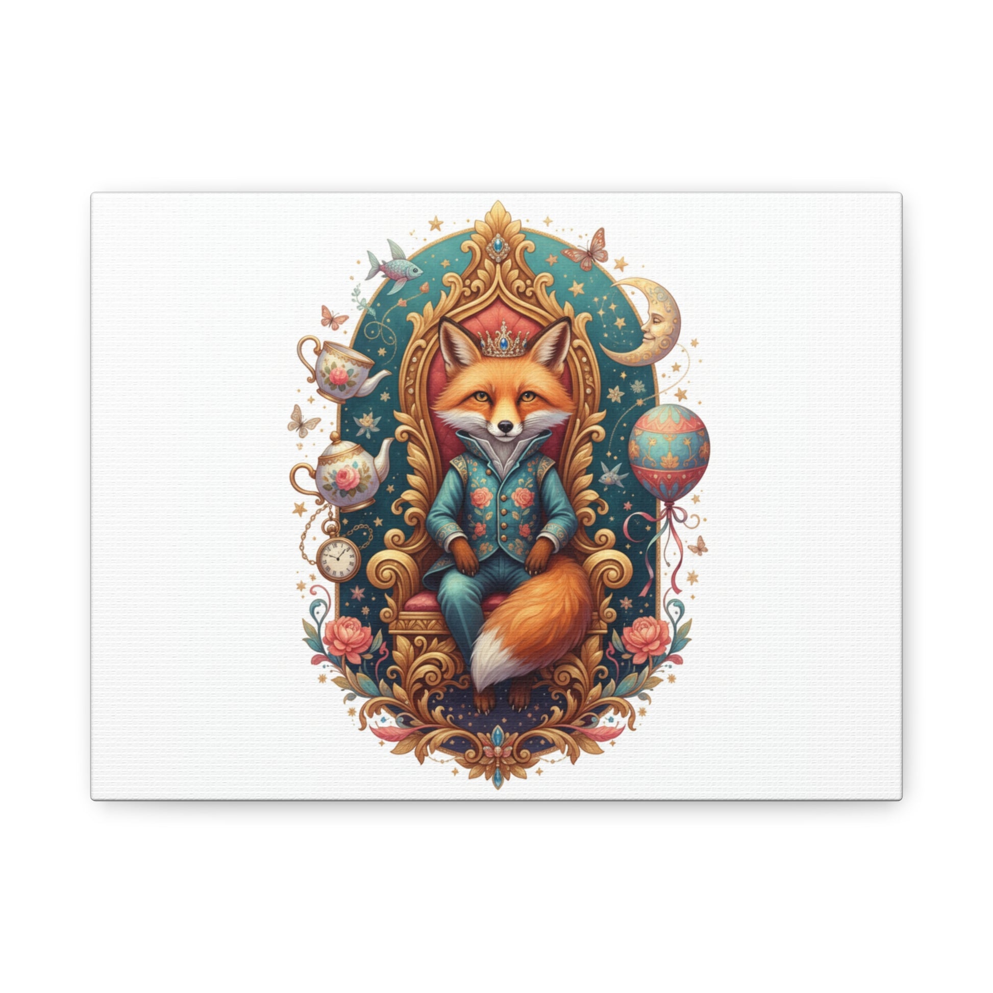 Regal Fox Throne Canvas Print — Whimsical Animal Wall Art (free shipping)