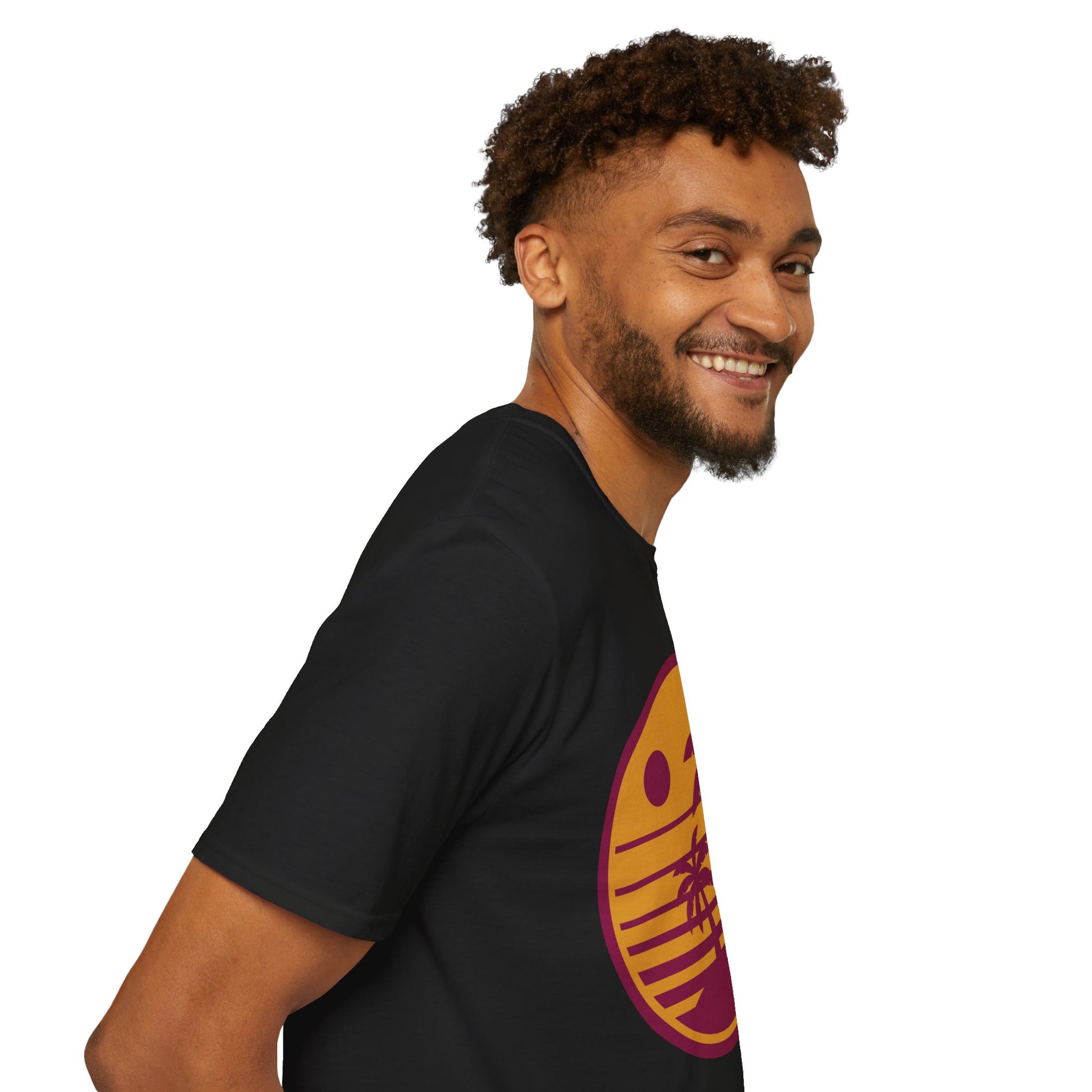 This lightweight cotton tee carries a warm, retro-surf vibe — a sunset-silhouette of palm trees and horizon lines printed in muted sunset tones. It feels like slow evenings on a quiet shore: soft fabric against your skin, a relaxed crew neckline, and clean lines that let the design speak. Wear it on weekend drives, at dusk beach walks, or layered under an open shirt for laid-back summer nights. The shirt’s breathable ring-spun cotton and classic fit make it comfortable for long days outdoors and effortless to style with shorts, linen pants, or a well-worn denim jacket.