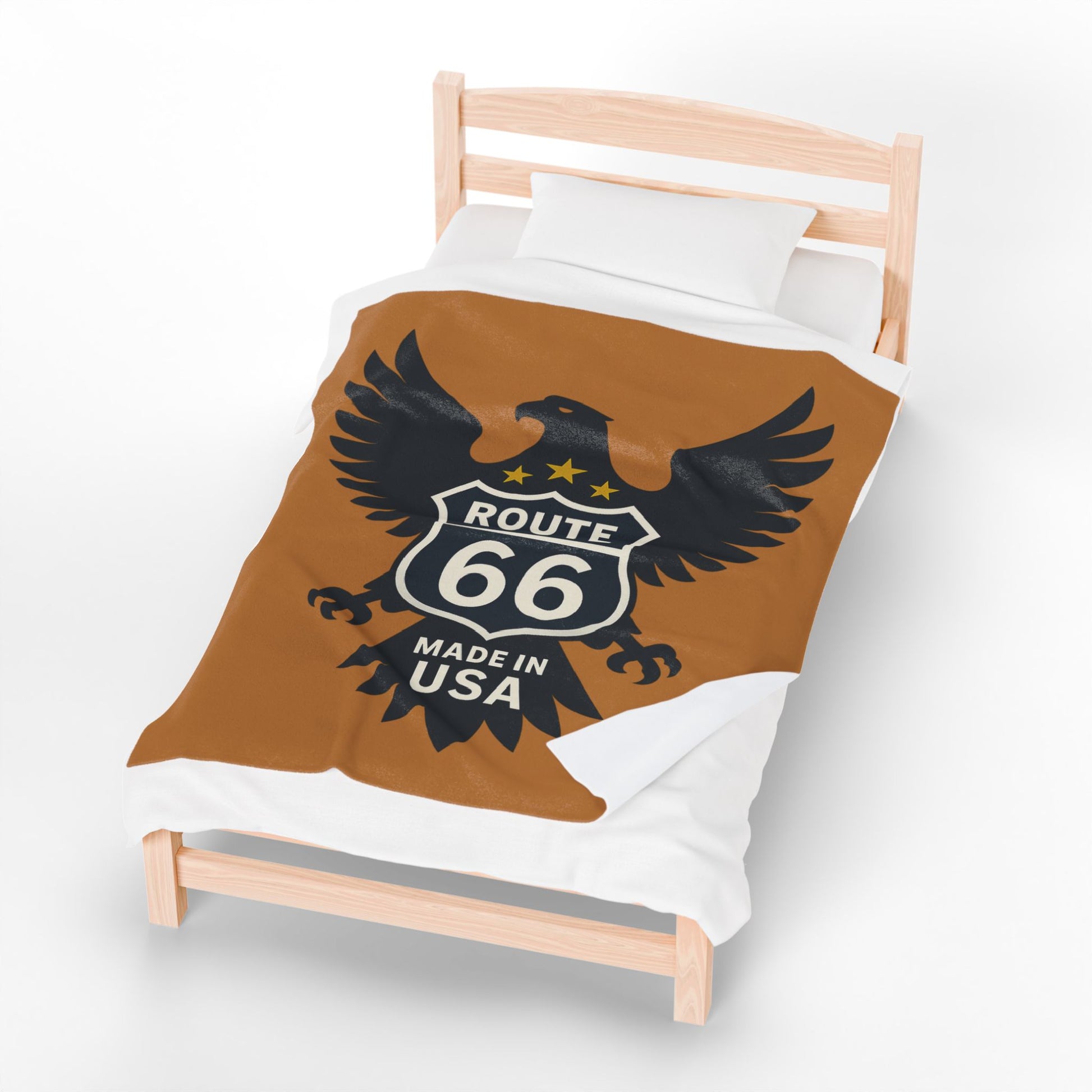 Route 66 Eagle Velveteen Plush Blanket — Made in USA Vintage Travel Throw