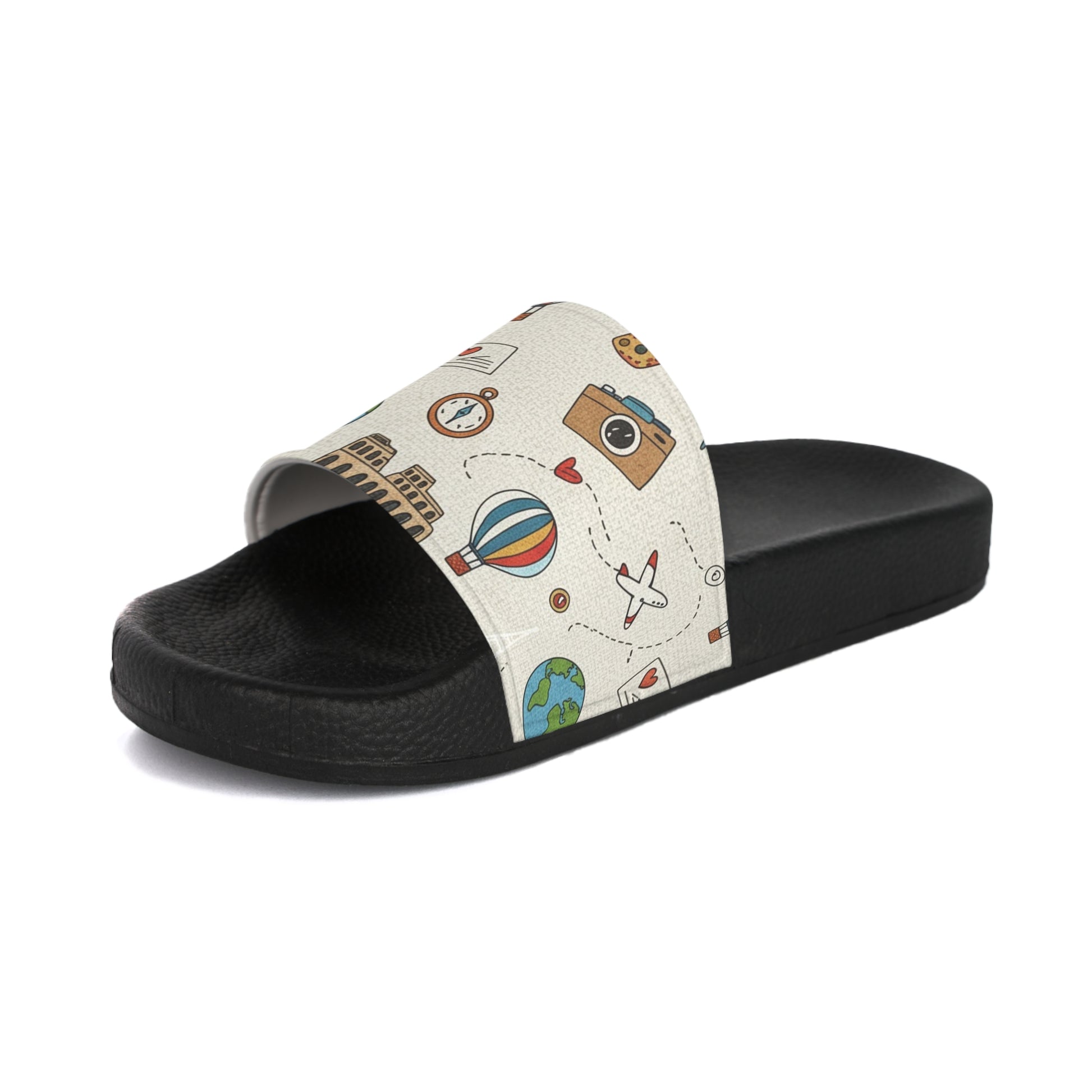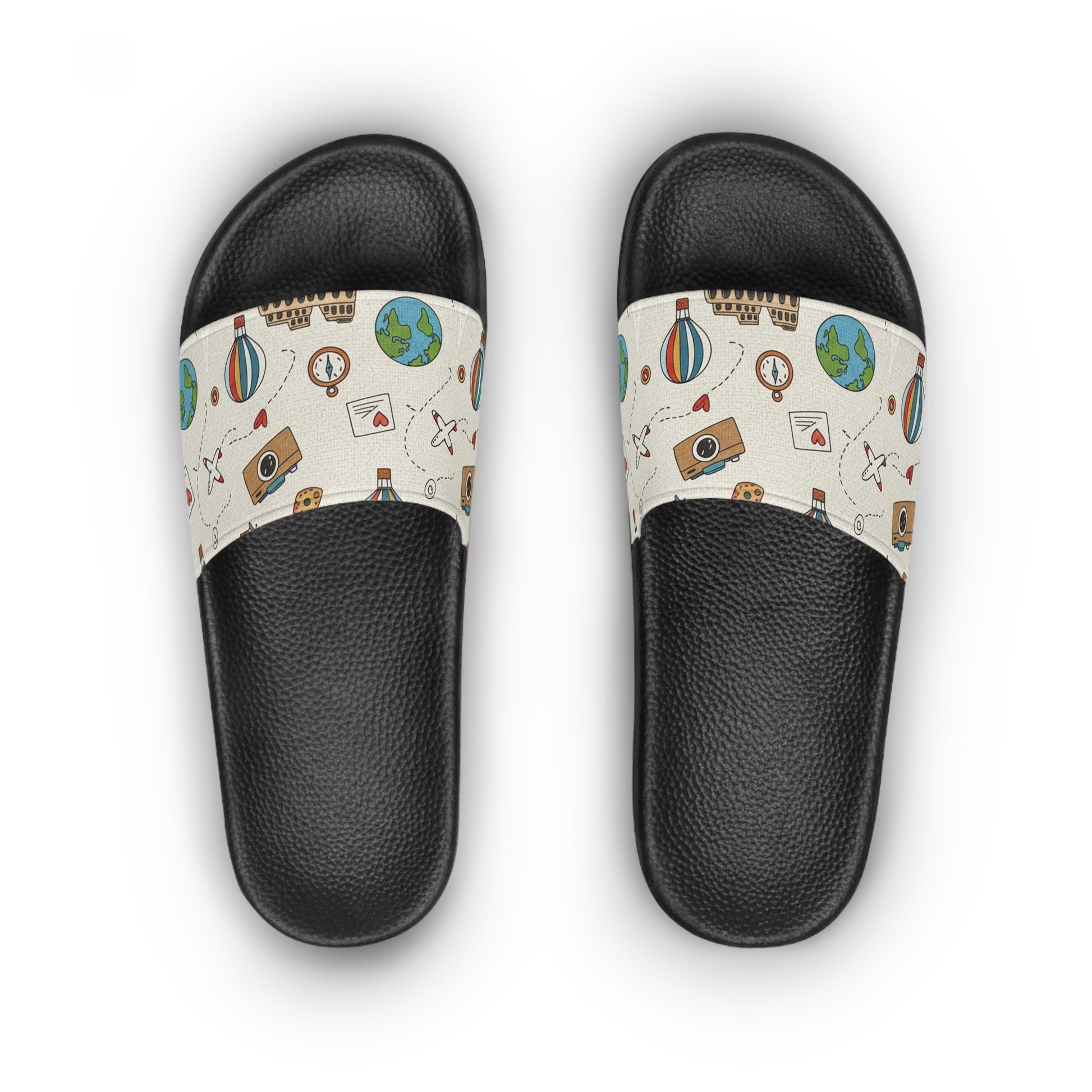 Women's Slide Sandals Travel Doodles / Wanderlust Whimsy