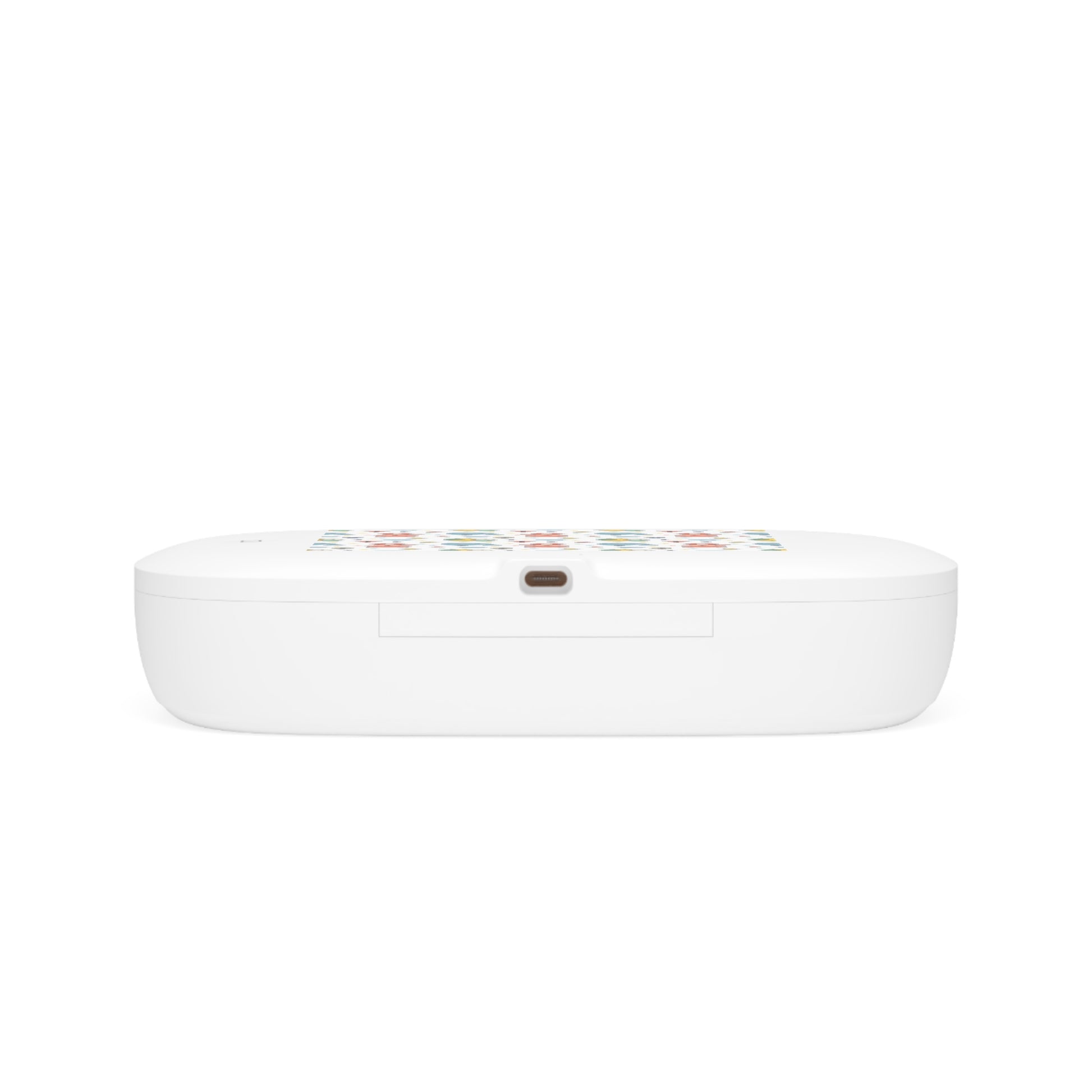 A compact UV phone sanitizer that doubles as a wireless charging pad — made to fit into everyday routines with a touch of playful design. Slide your phone or small essentials inside, choose a quick 90-second cycle or a deeper 5-minute clean, then lift the lid when you’re ready. While it neutralizes microbes with dual UV germicidal LEDs, the top plate functions as a 5W wireless charger so your phone can wake up fresh and powered. Bright, crisp printed artwork adds personality to your nightstand, desk, or entry shelf, while the included 39" USB-C cable keeps it ready to use from any outlet. Thoughtful safety cut-off stops the UV when the lid opens, and the interior is roomy enough for large phones, keys, glasses, watches, cards, and small jewelry.