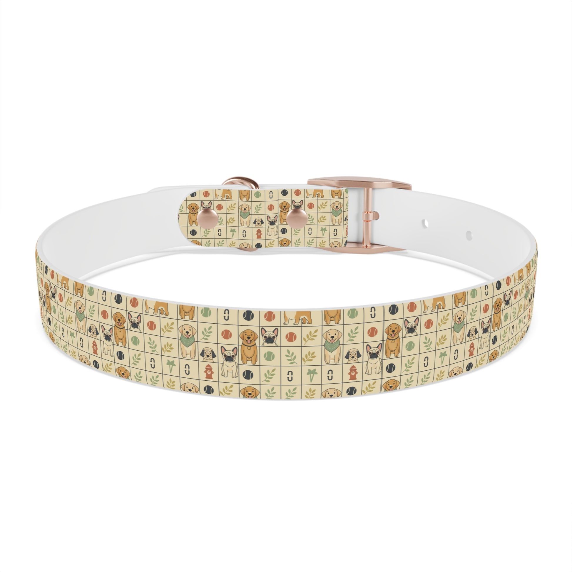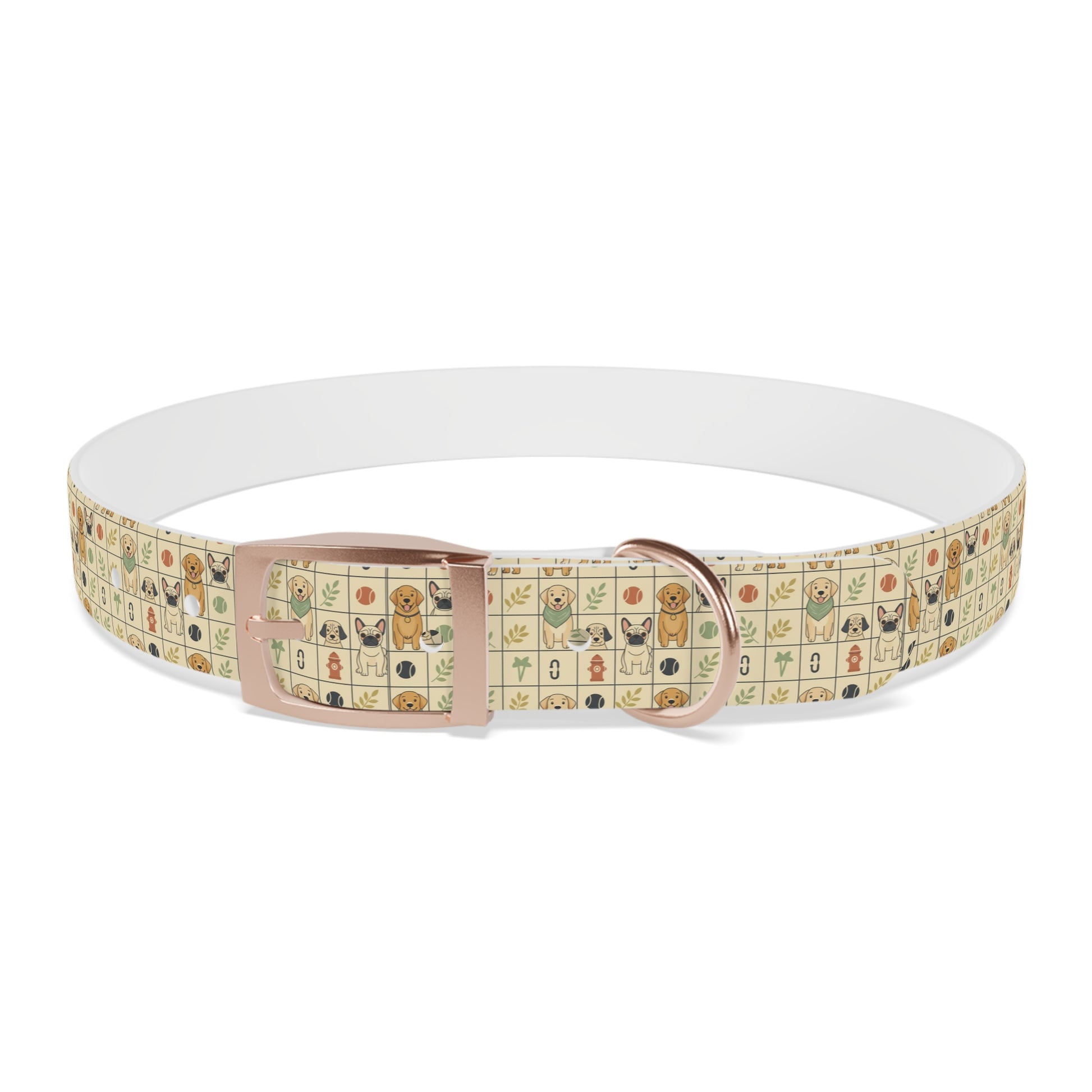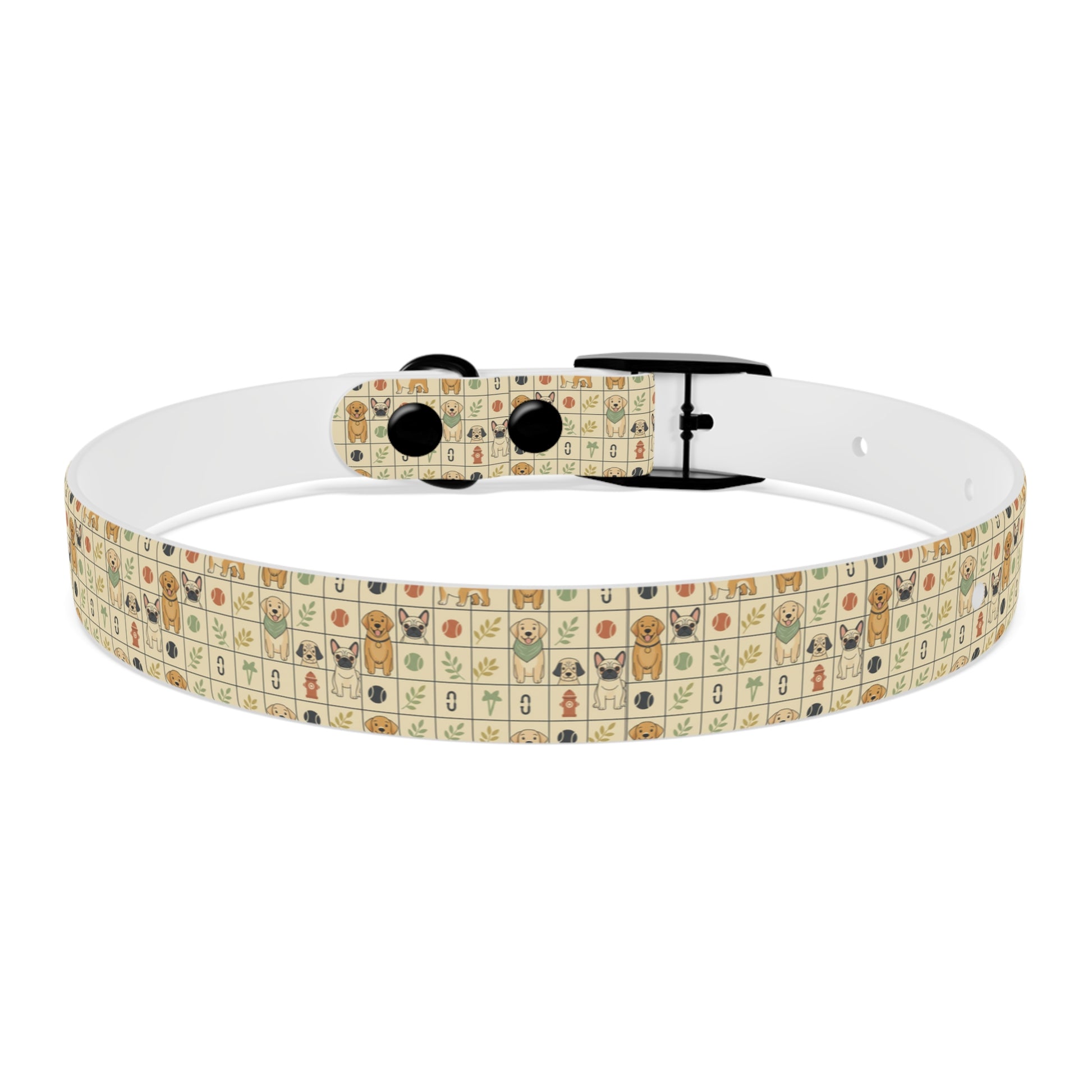 Bring a warm, playful charm to your pup’s everyday adventures with this durable TPU dog collar. The soft cream background is dotted with tiny, hand-drawn icons—happy dog faces, paw prints, leaves, and bones—arranged in a cozy grid that reads like a patchwork of neighborhood memories. Lightweight yet structured, the collar holds its shape on rainy walks, muddy hikes, and kitchen-table cuddles. Pick the buckle finish that matches your dog’s personality—black onyx for bold pups, rose gold for a sweet touch, gun metal for a sleek look, or vintage brass for old-soul charm. Easy to rinse clean and naturally odor-resistant, it’s made to handle the everyday messes without losing its cheerful character. Comfortable against the skin, hypoallergenic, and offered in four sizes so you can find the right fit for your small explorer or backyard companion.