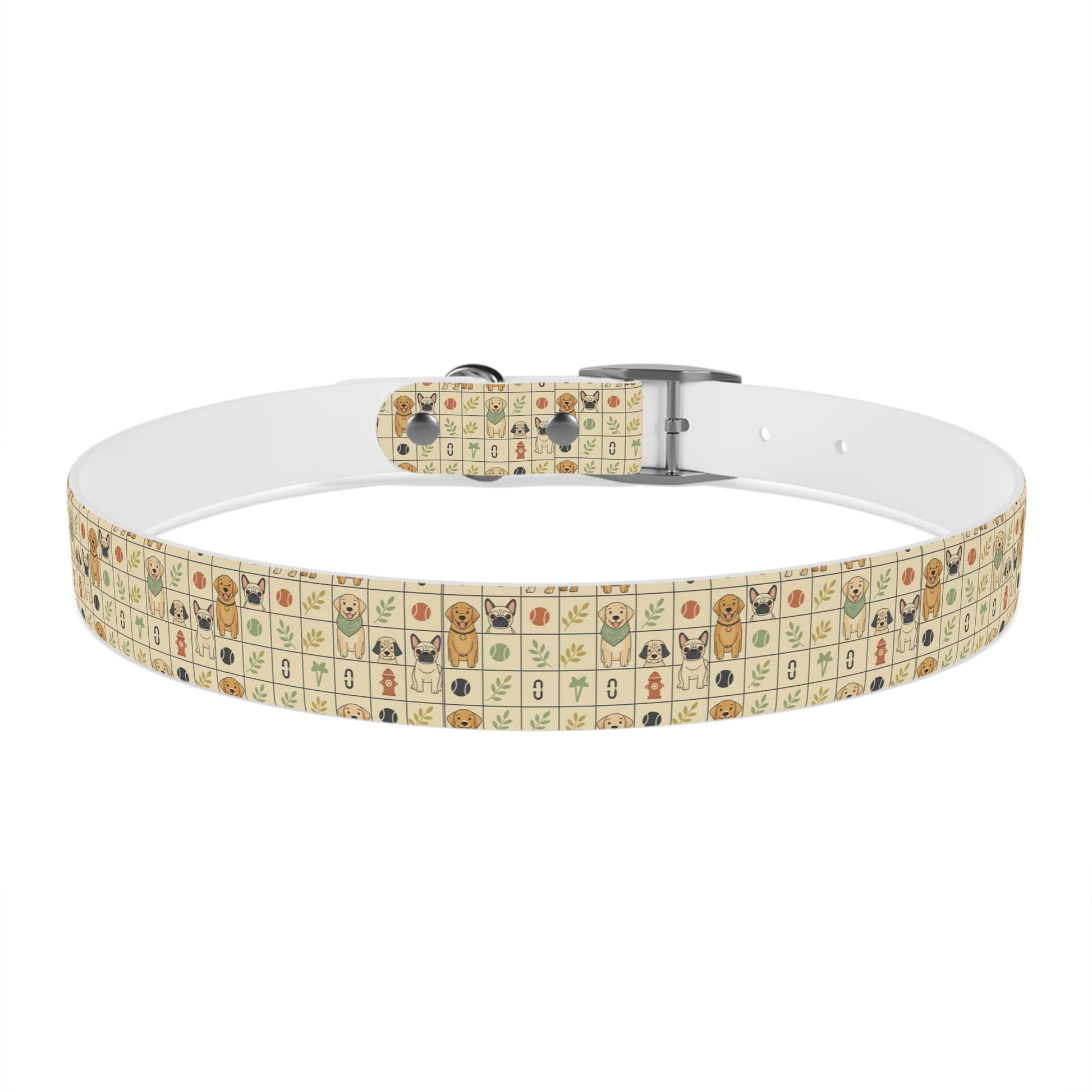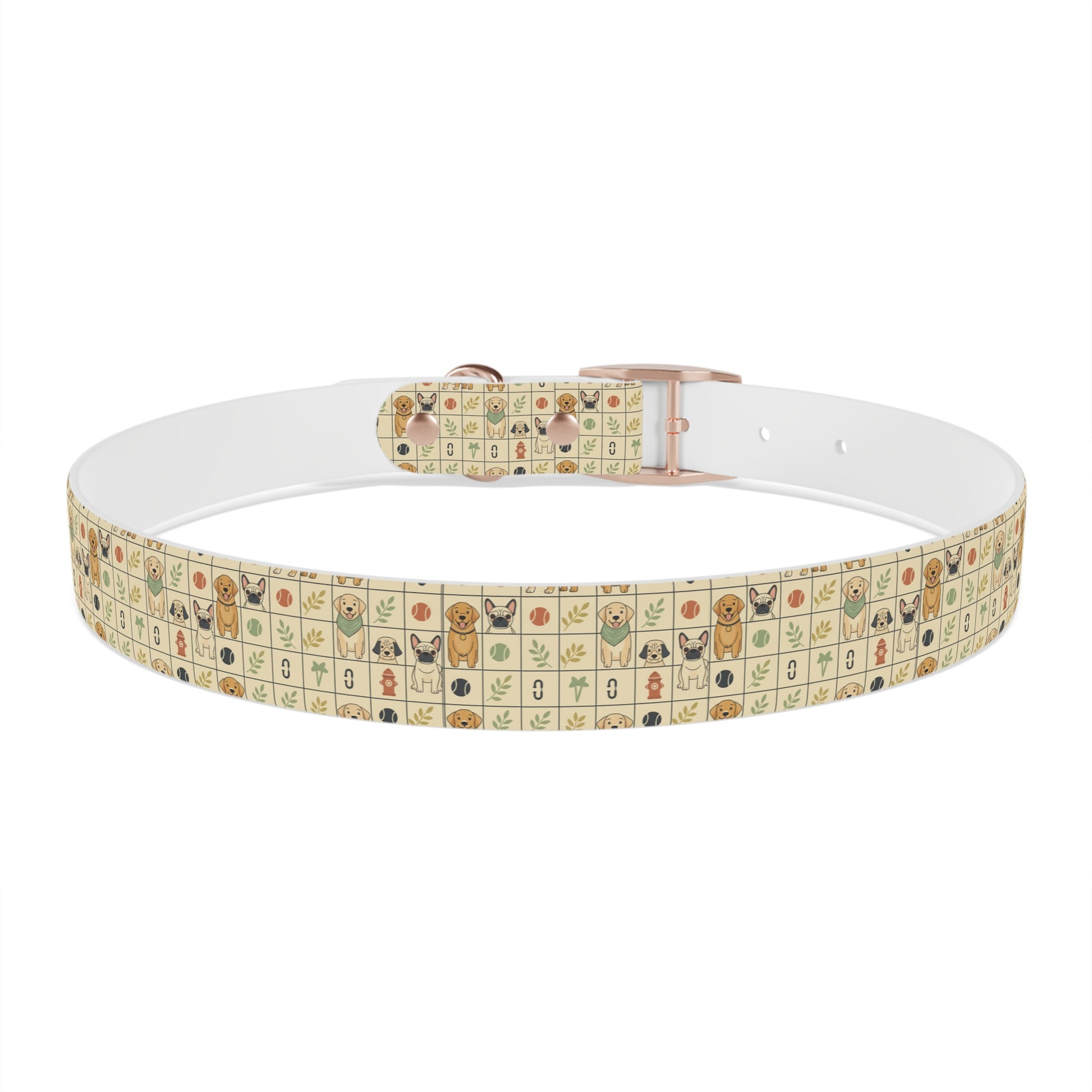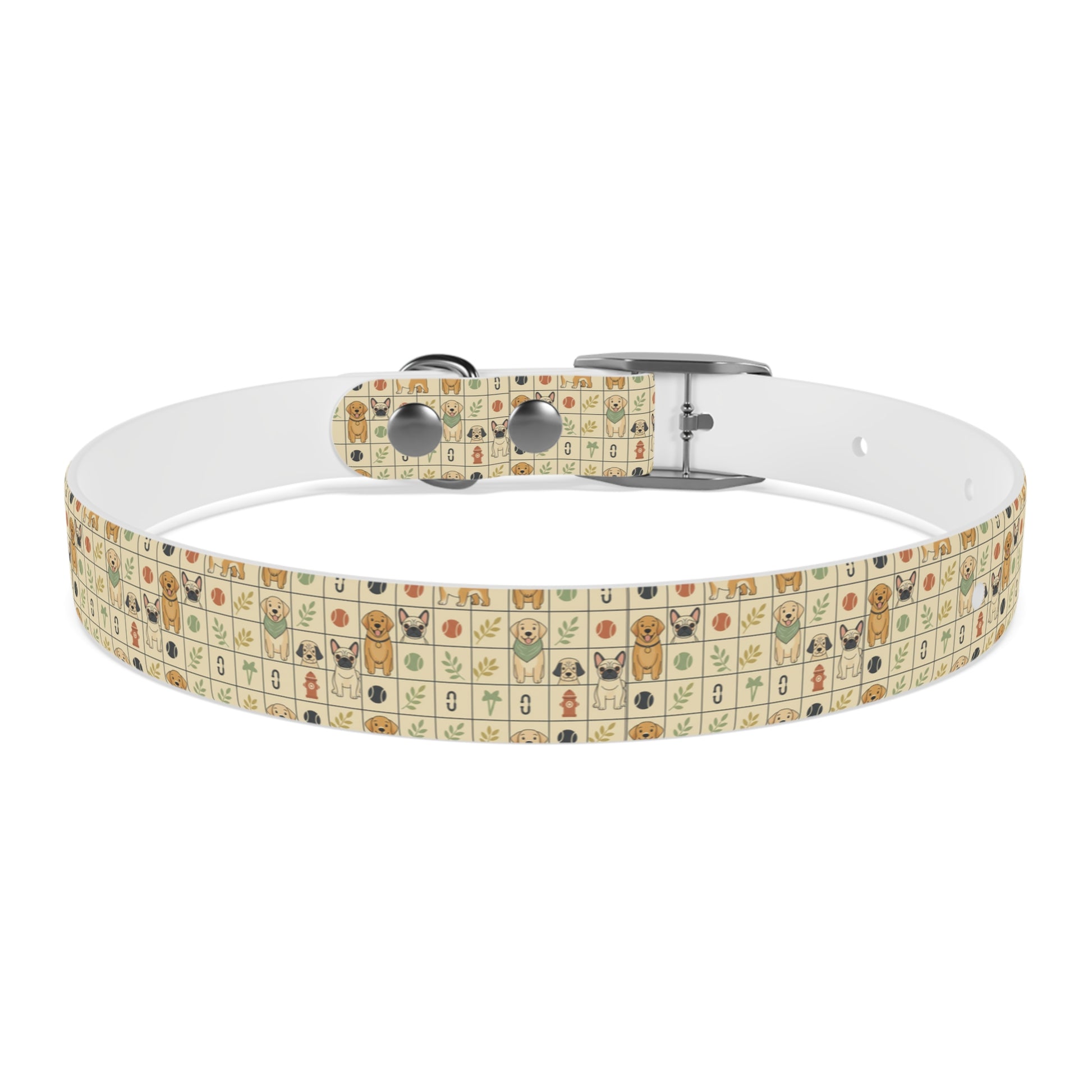 Bring a warm, playful charm to your pup’s everyday adventures with this durable TPU dog collar. The soft cream background is dotted with tiny, hand-drawn icons—happy dog faces, paw prints, leaves, and bones—arranged in a cozy grid that reads like a patchwork of neighborhood memories. Lightweight yet structured, the collar holds its shape on rainy walks, muddy hikes, and kitchen-table cuddles. Pick the buckle finish that matches your dog’s personality—black onyx for bold pups, rose gold for a sweet touch, gun metal for a sleek look, or vintage brass for old-soul charm. Easy to rinse clean and naturally odor-resistant, it’s made to handle the everyday messes without losing its cheerful character. Comfortable against the skin, hypoallergenic, and offered in four sizes so you can find the right fit for your small explorer or backyard companion.