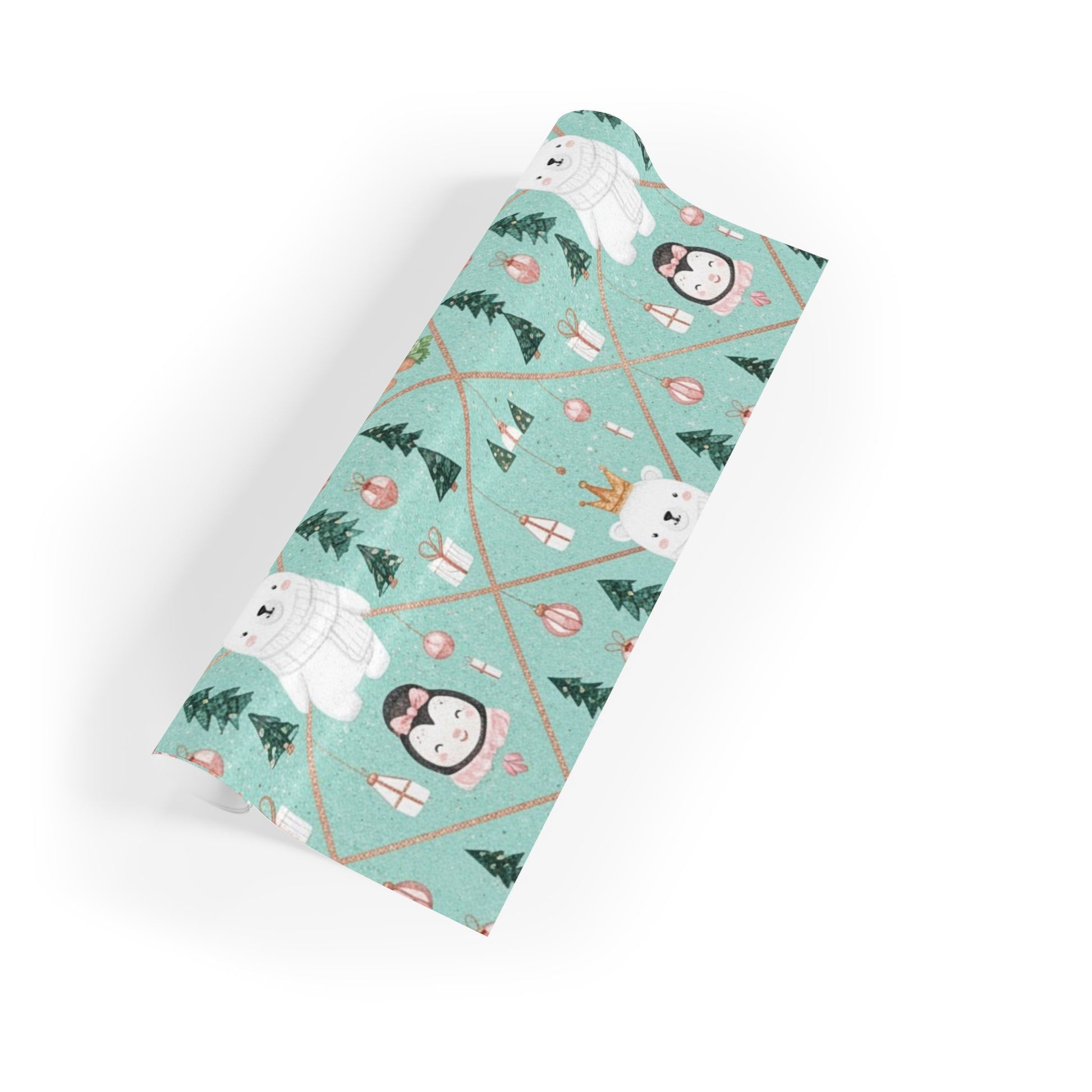 Whimsical Holiday Gift Wrapping Paper Roll – Cute Polar Bears & Penguins Design