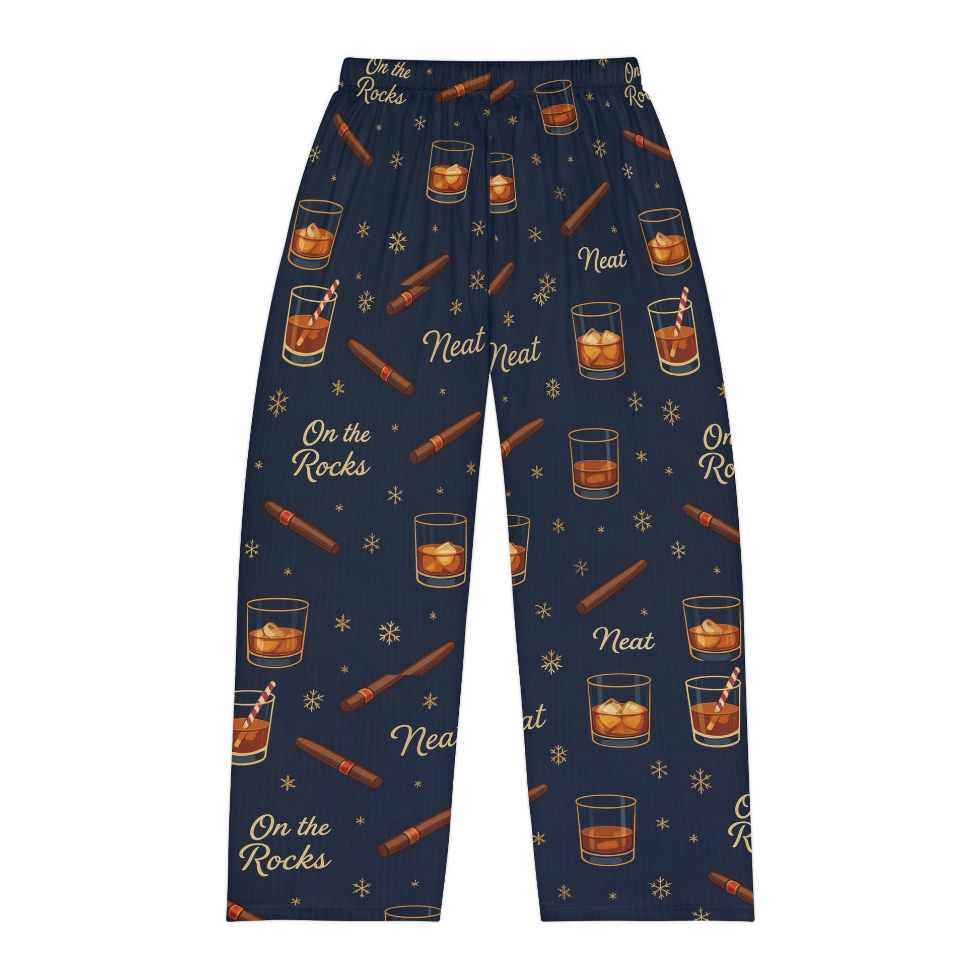 Whiskey & Cigar - whiskey neat- whiskey on the rocks- Pajama Pants — Men’s Novelty Lounge Pants ("Neat" On the Rocks Pattern)