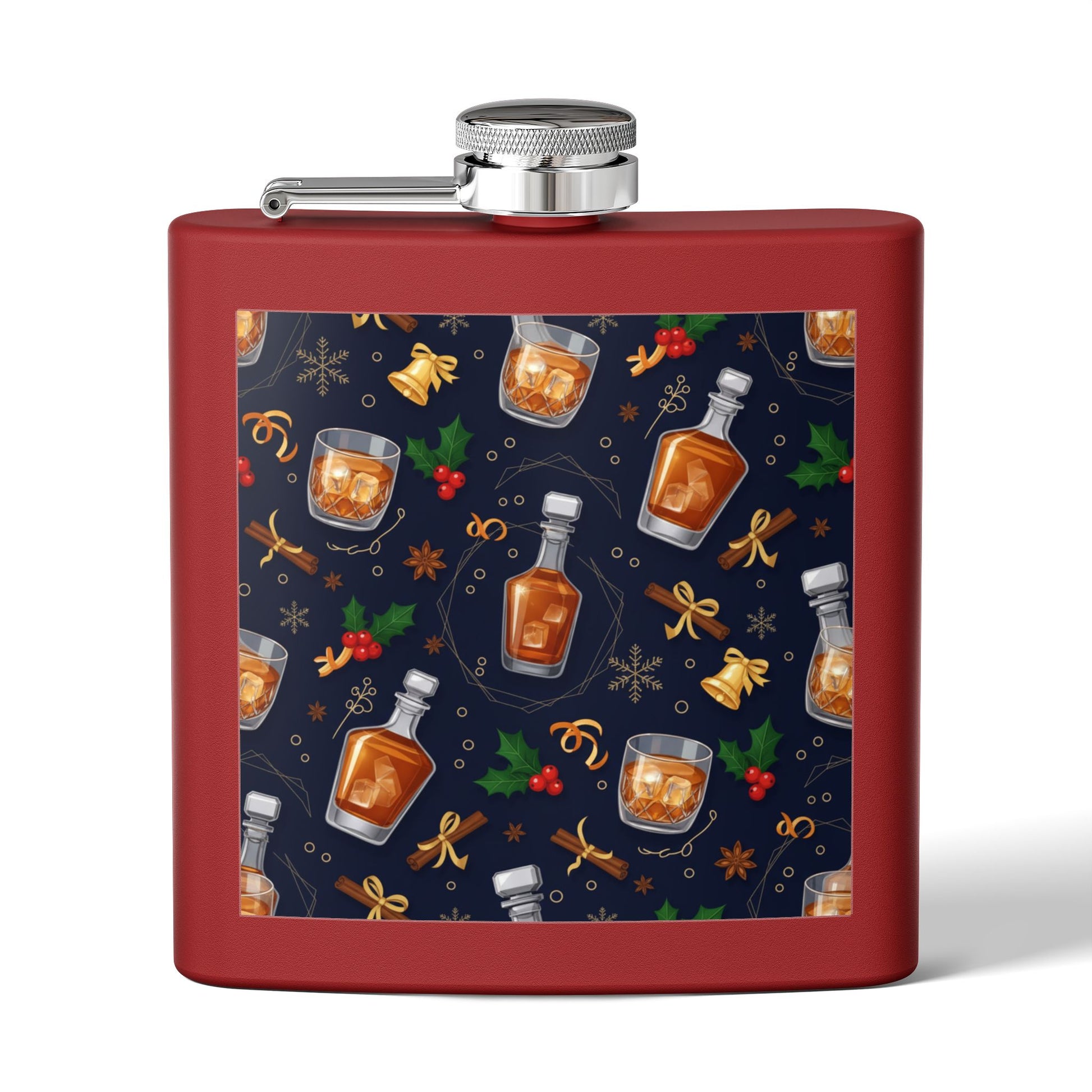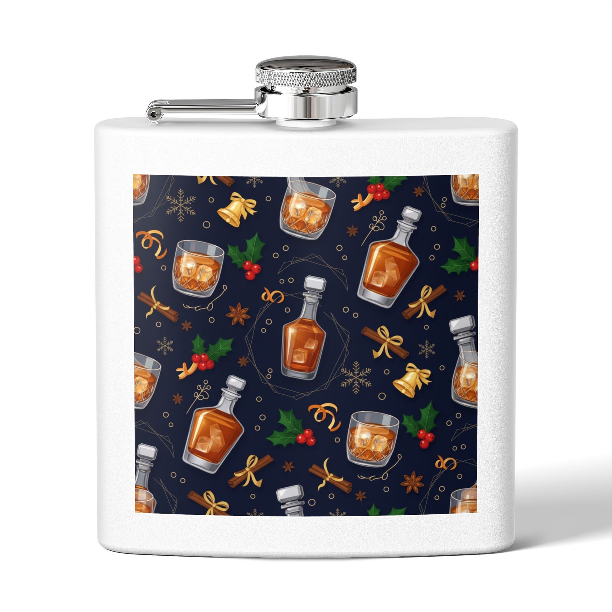 Whiskey Flask — Holiday Spirits Pattern 6oz Stainless Steel Flask (free shipping)