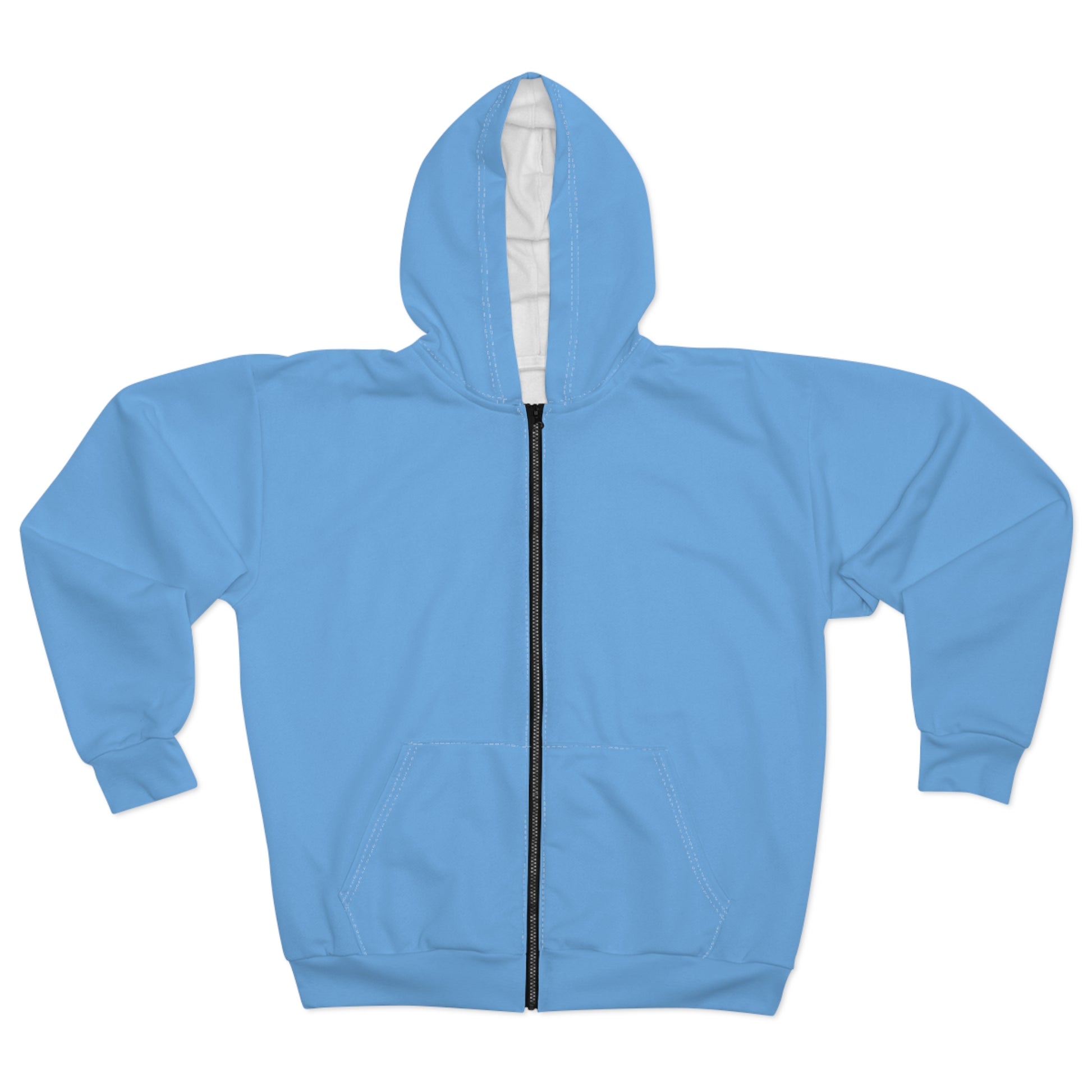 Introducing the perfect women's light blue Zip Hoodie, designed for comfort and style. This hoodie envelops you in a warm, cozy atmosphere, making it ideal for casual outings, lounging at home, or staying active during cooler days. With its vibrant all-over print, it’s a standout piece for those who love to express their personality through fashion. Perfect for birthdays, holidays, and casual get-togethers, this hoodie appeals to anyone looking for a stylish yet functional wardrobe staple. Join trendsetters and comfort-seekers alike who appreciate the blend of fashion and utility.