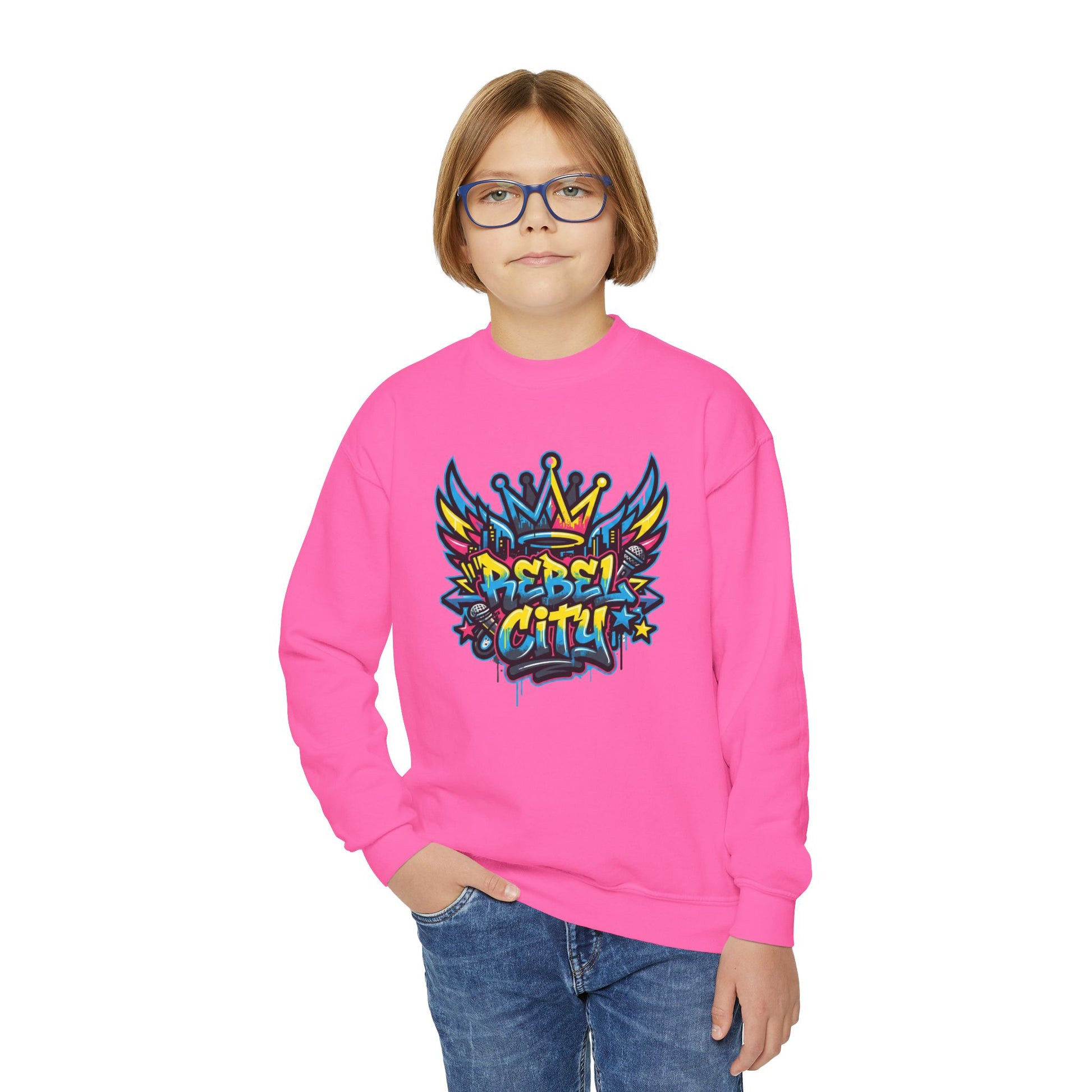 Youth Crewneck spray paint style- Sweatshirt - Colorful Rebel City Graffiti Crown Design