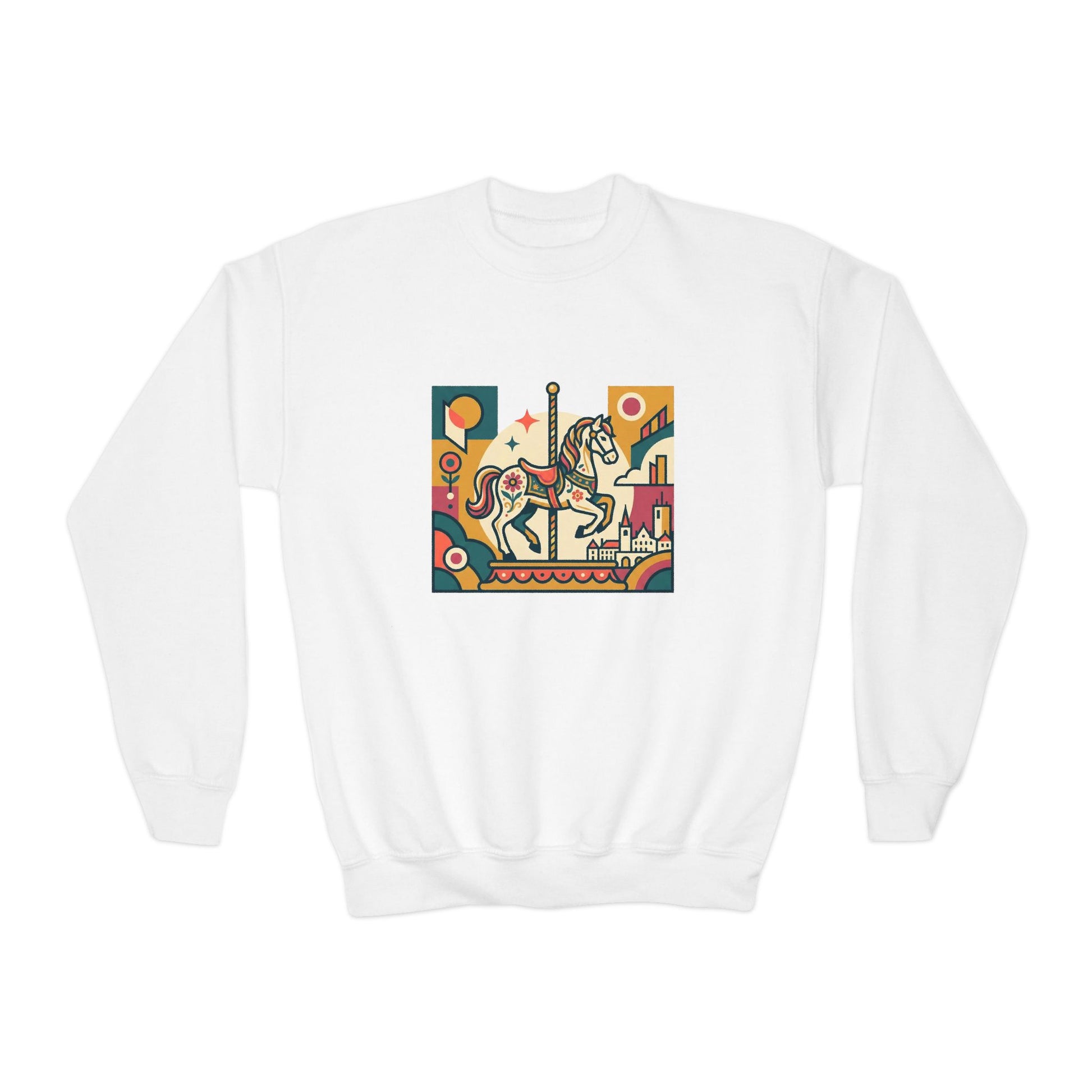 Youth Crewneck Sweatshirt — Retro Carousel Horse Graphic