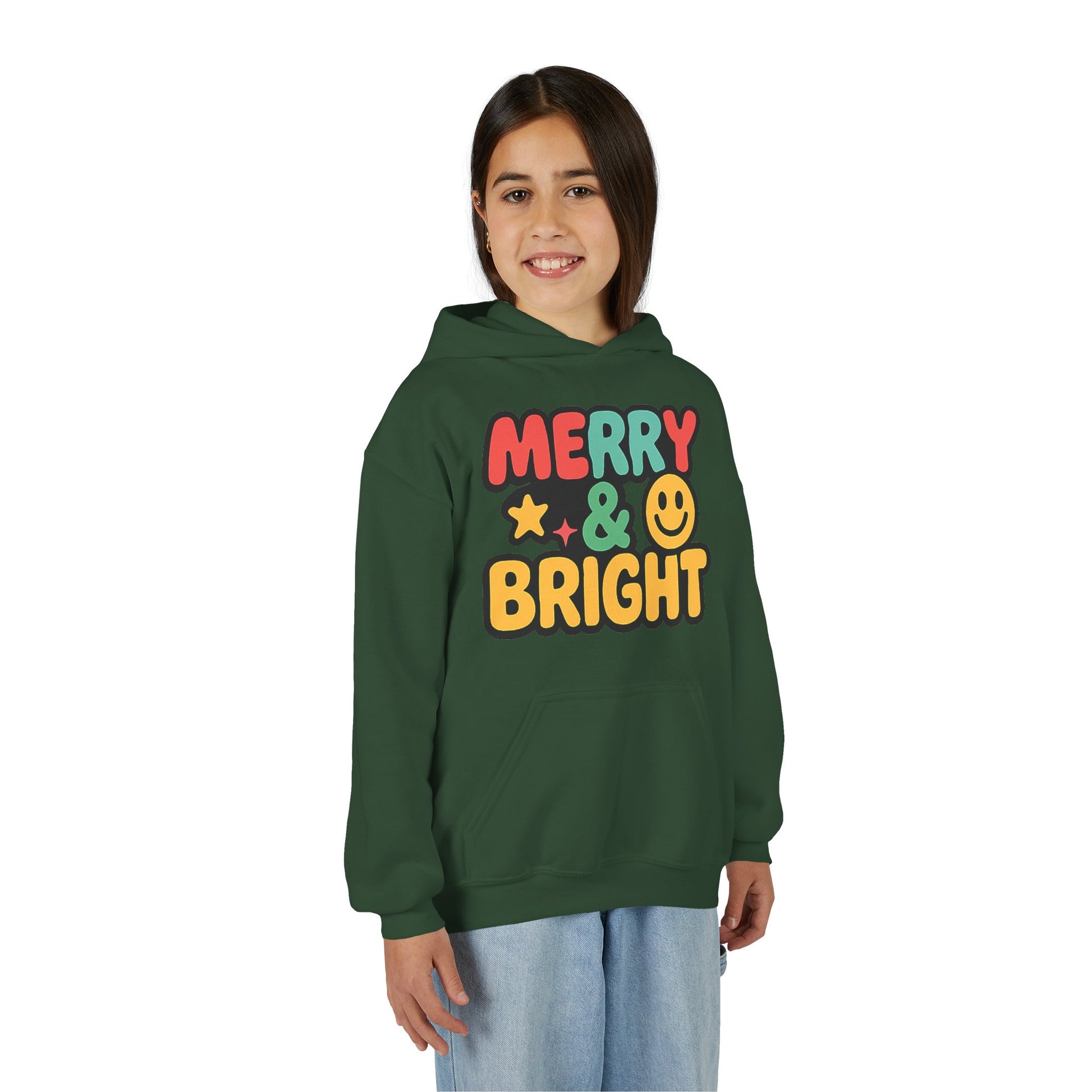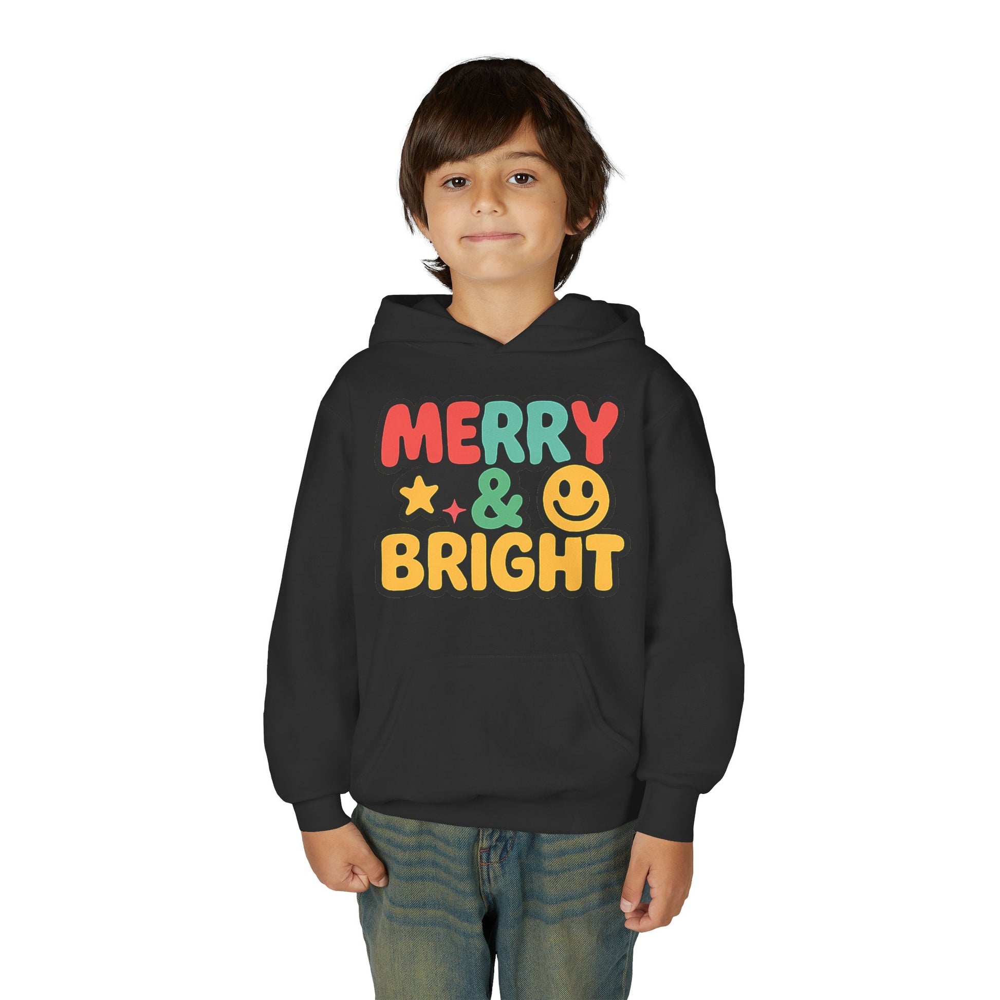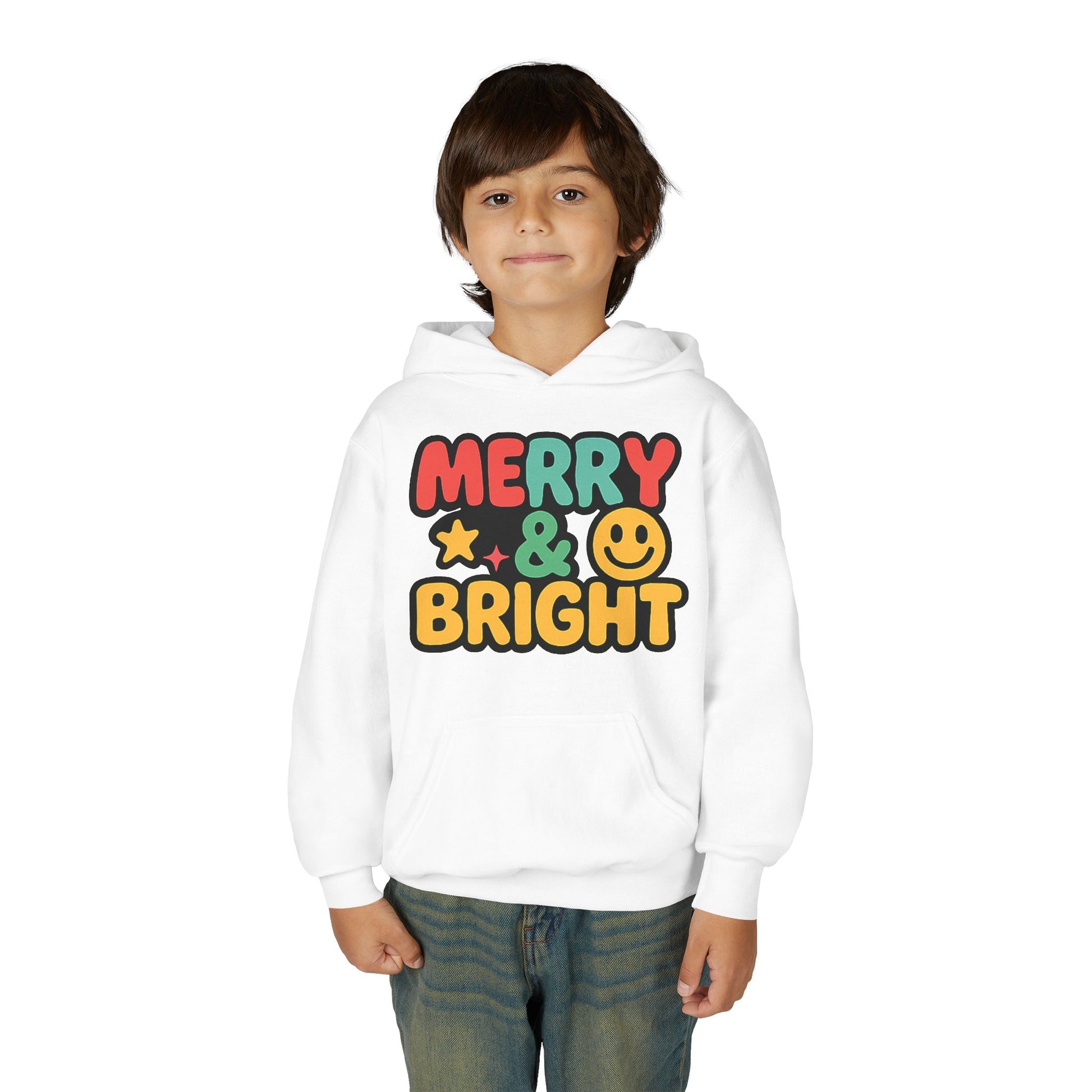 Youth Hoodie — 'Merry & Bright' Colorful Holiday Kids Sweatshirt