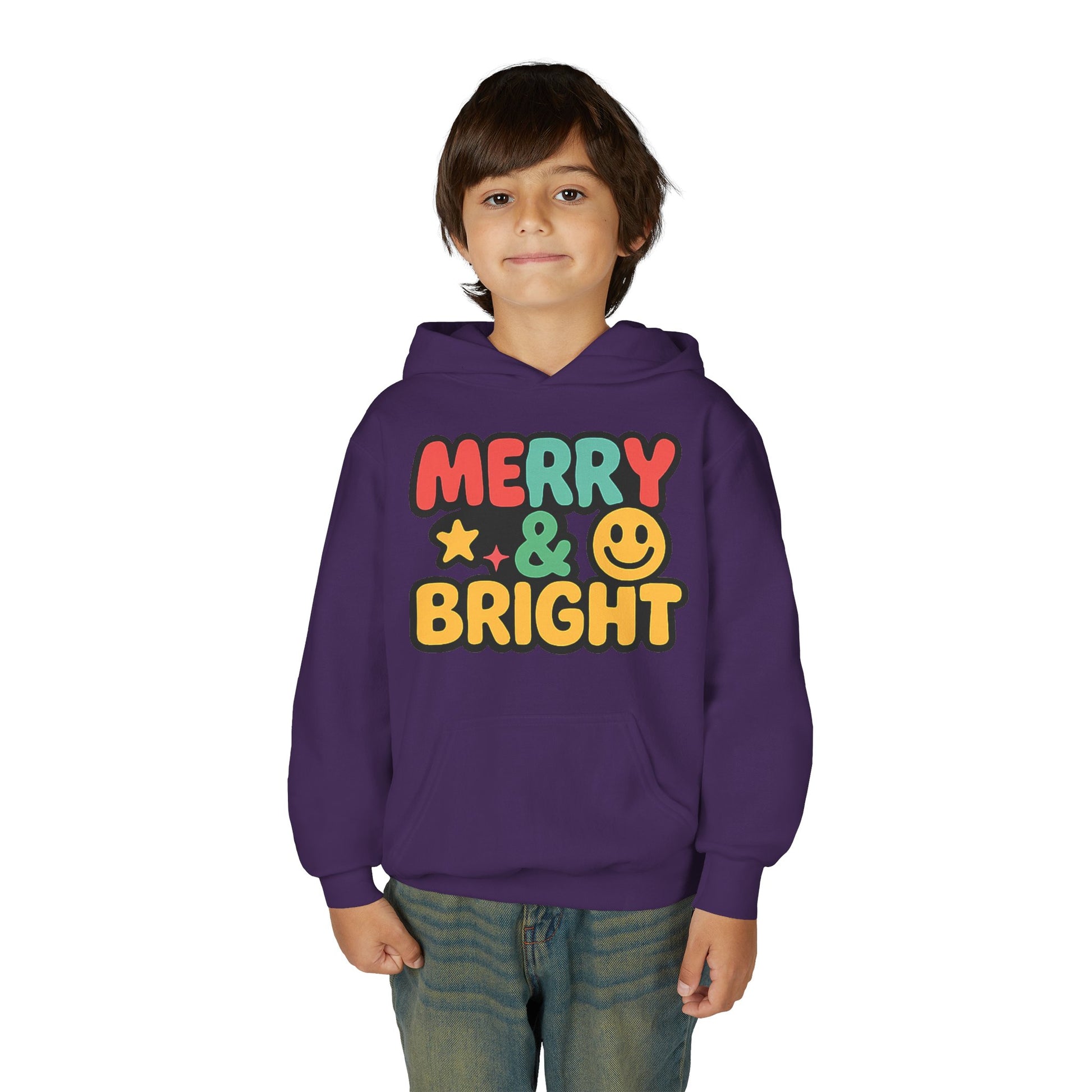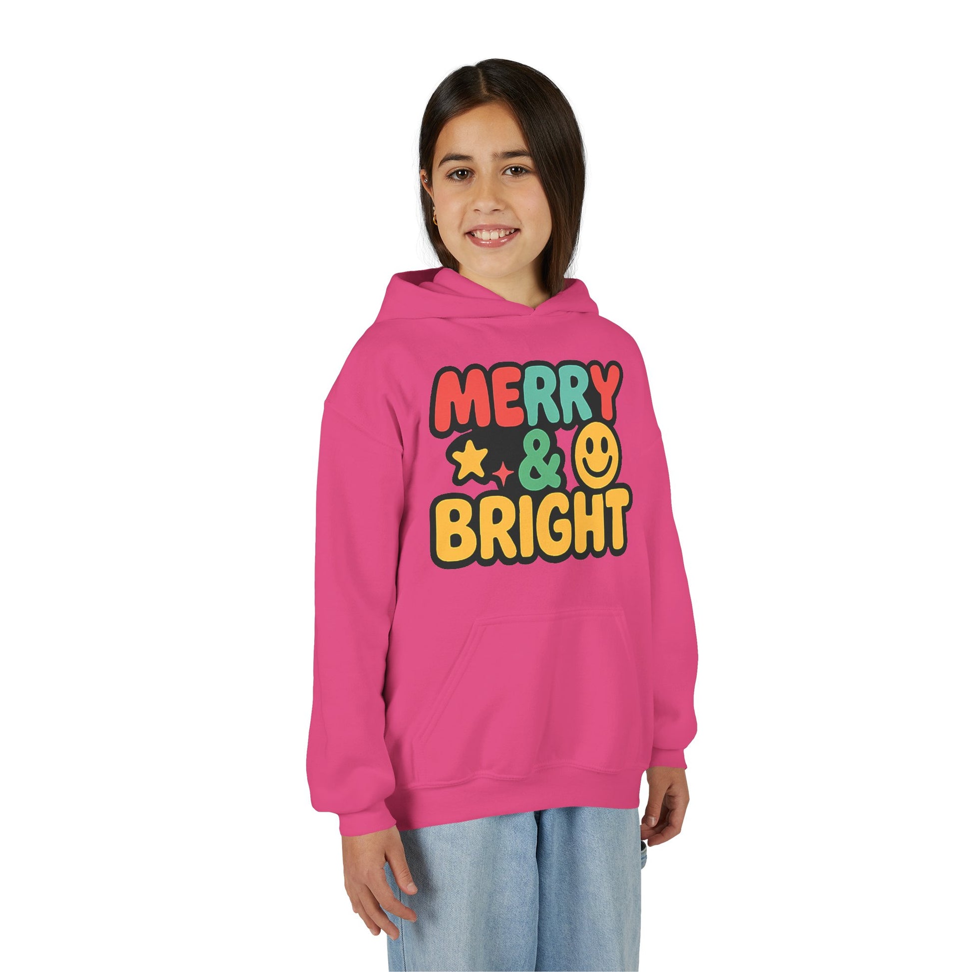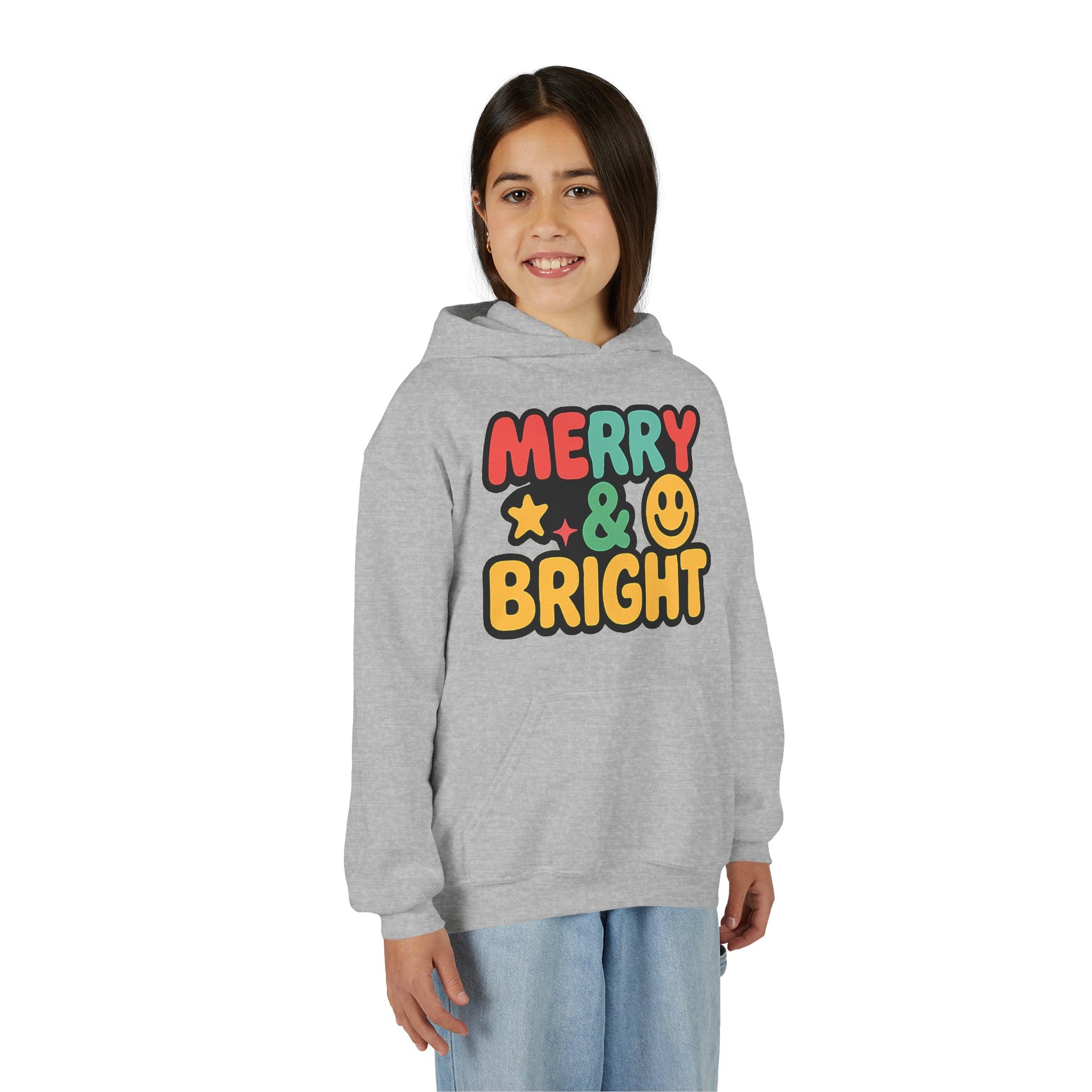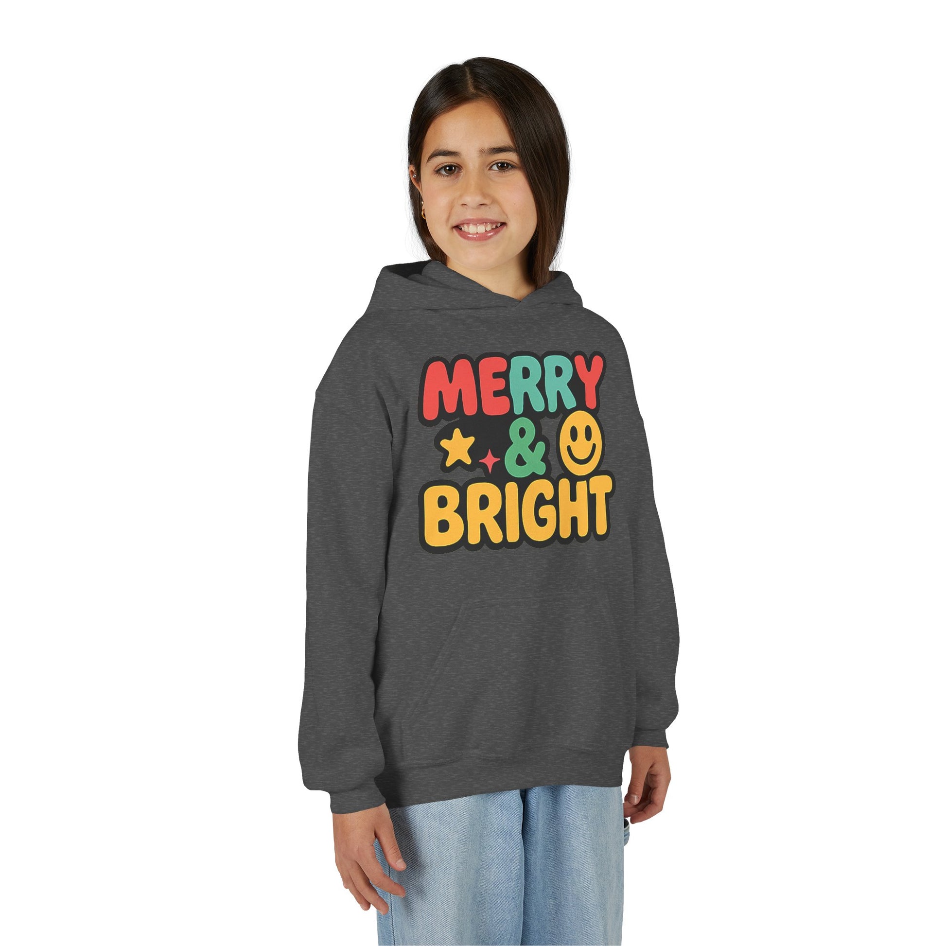 Youth Hoodie — 'Merry & Bright' Colorful Holiday Kids Sweatshirt