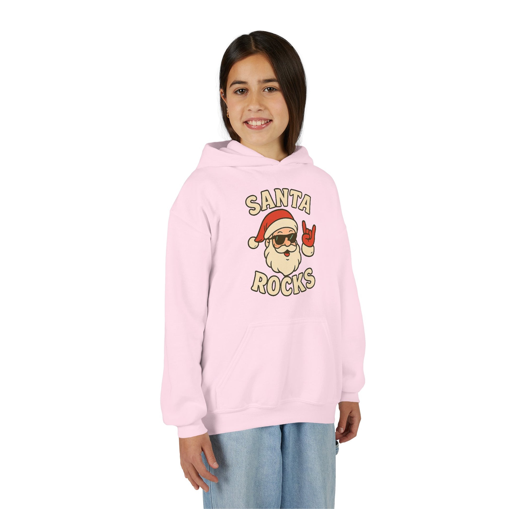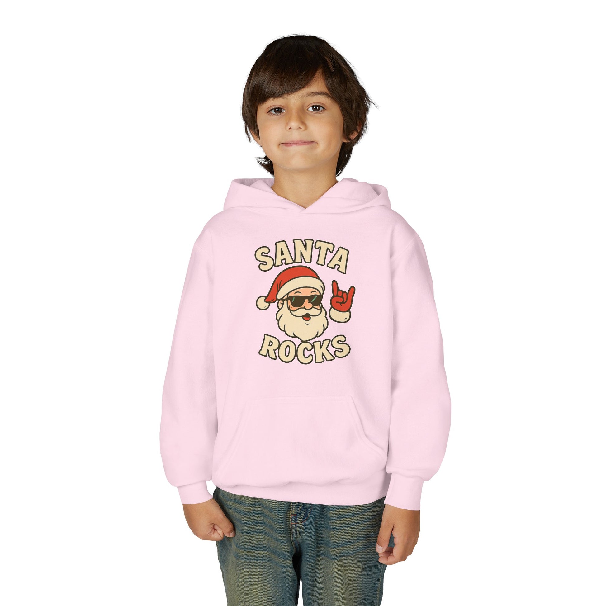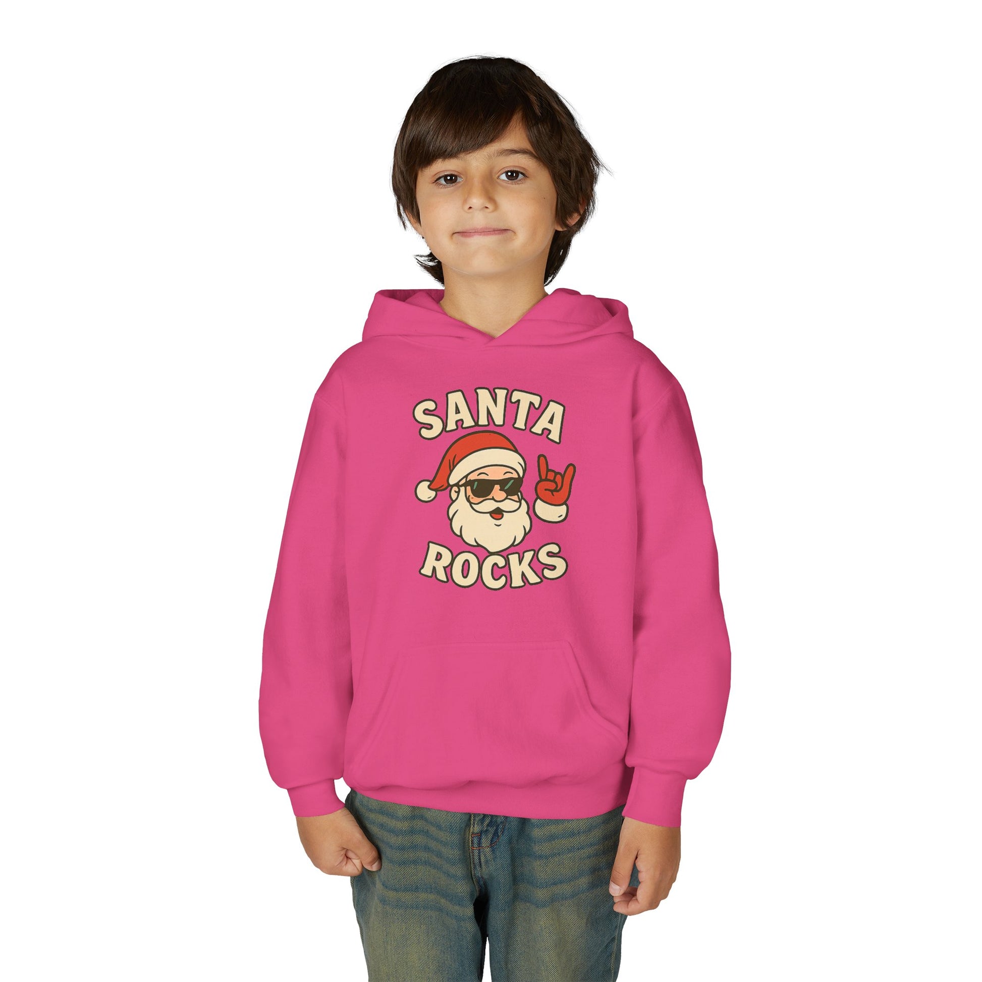 Youth Hoodie — "Santa Rocks" Cool Santa Christmas Sweatshirt