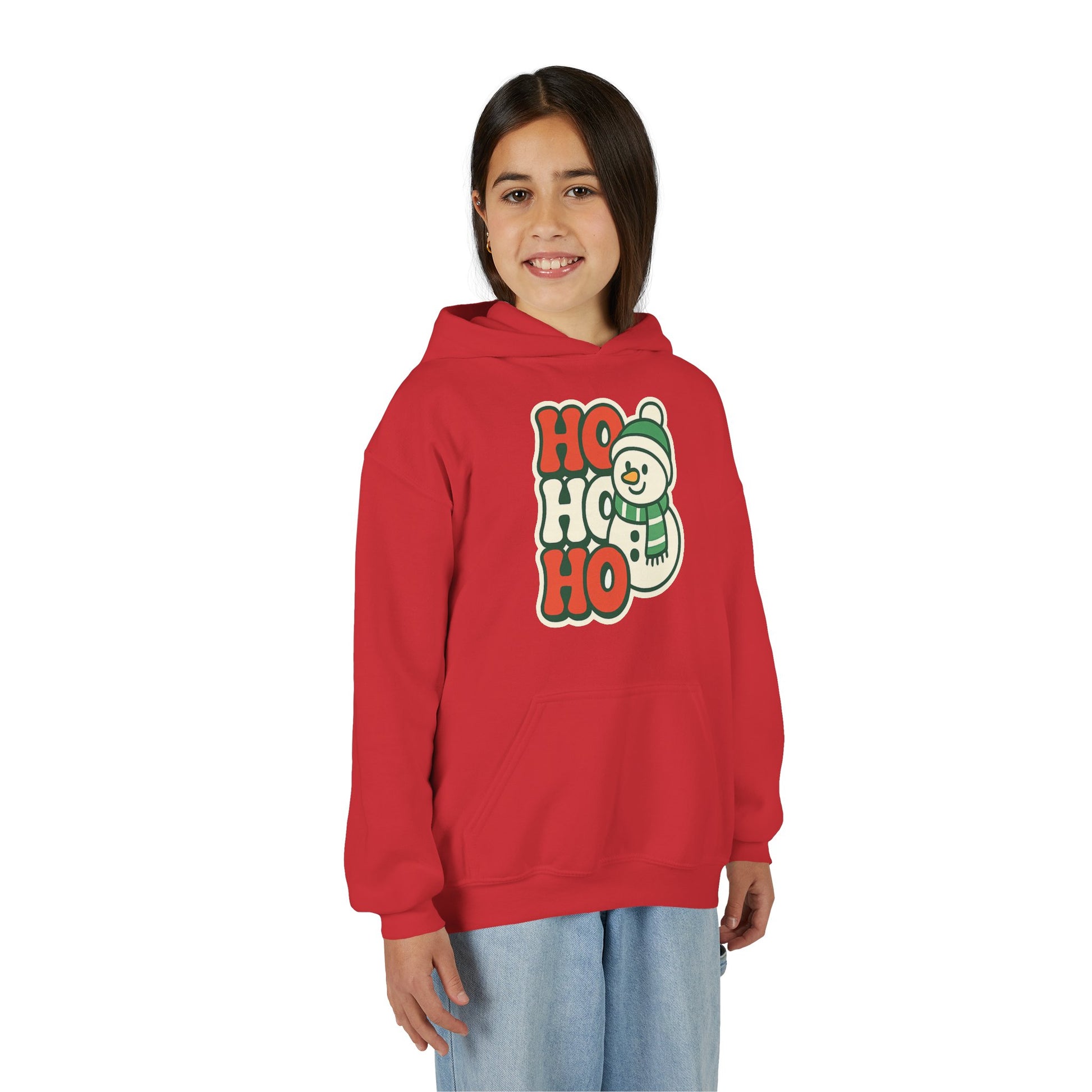 Youth kids Christmas Hoodie - 'HO HO HO' Snowman Holiday Sweatshirt