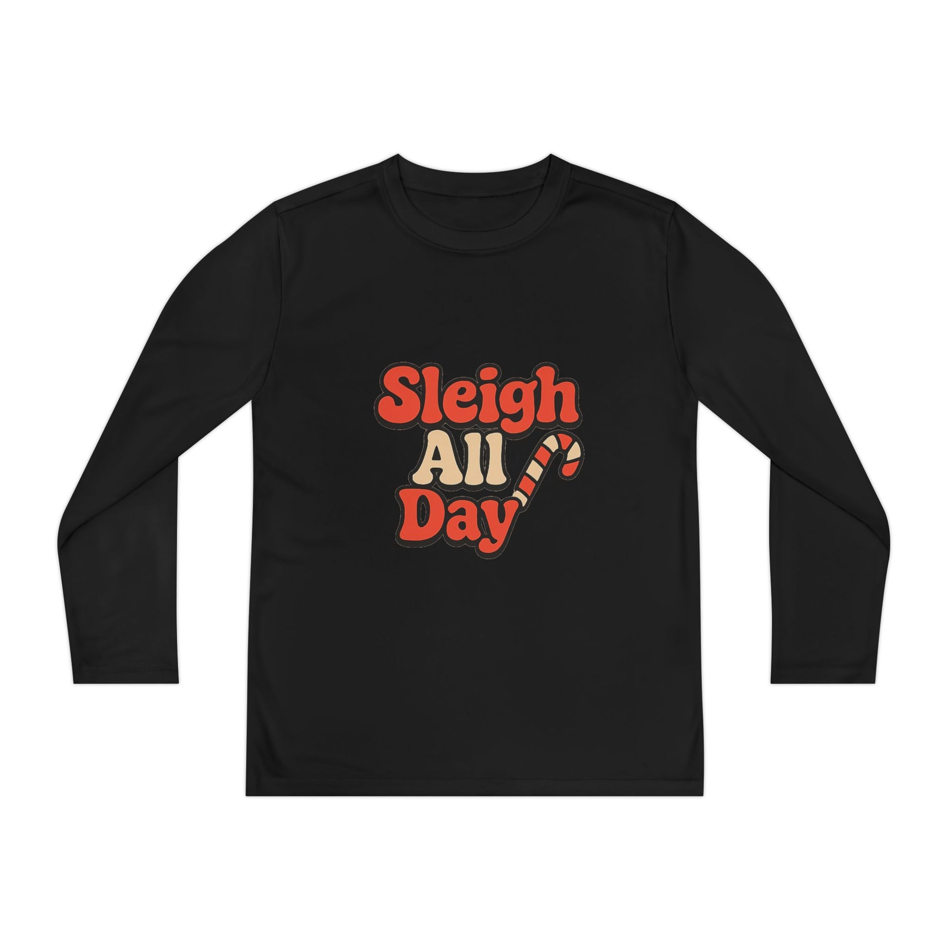 Youth Long Sleeve Tee — "Sleigh All Day" Christmas Candy Cane Holiday Shirt